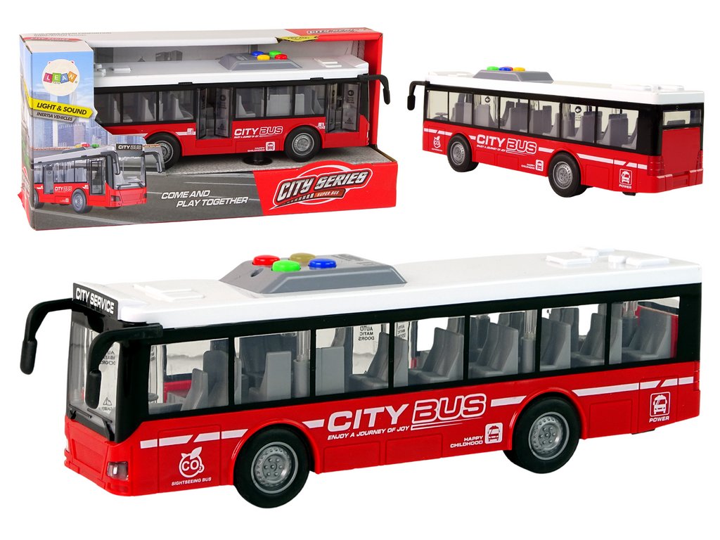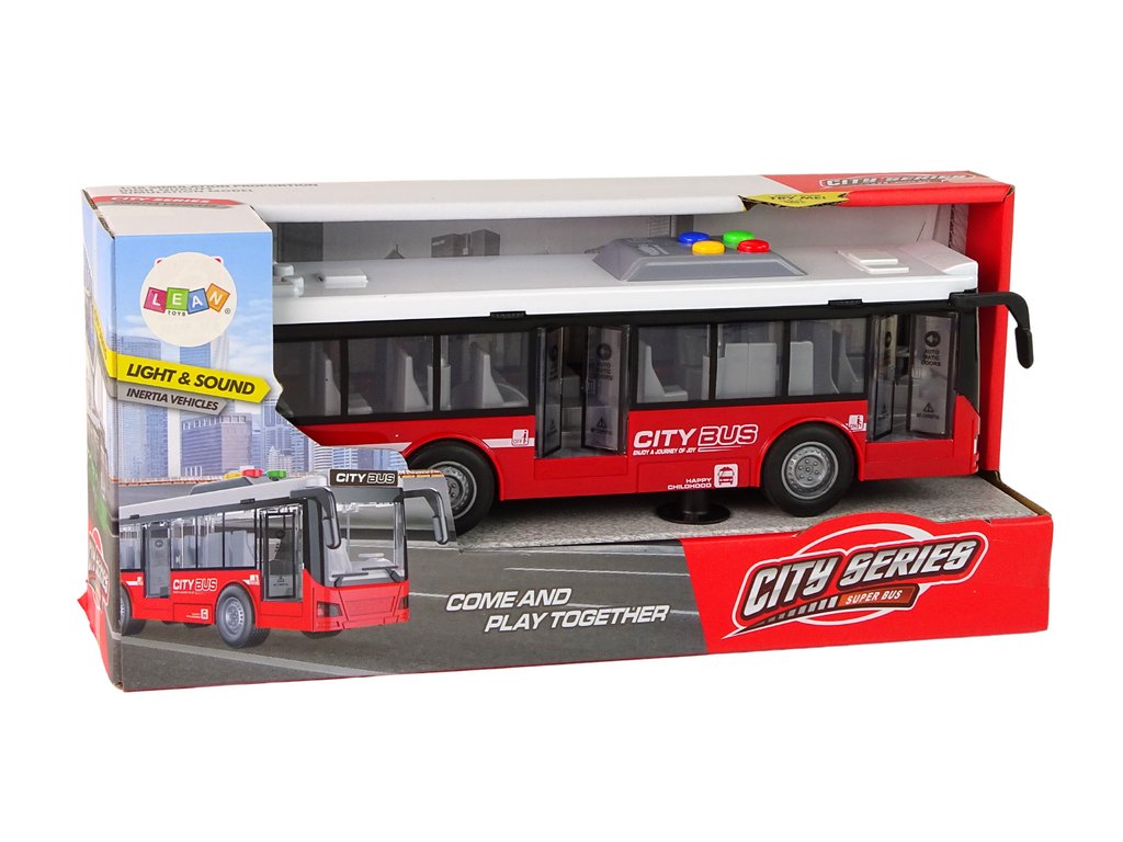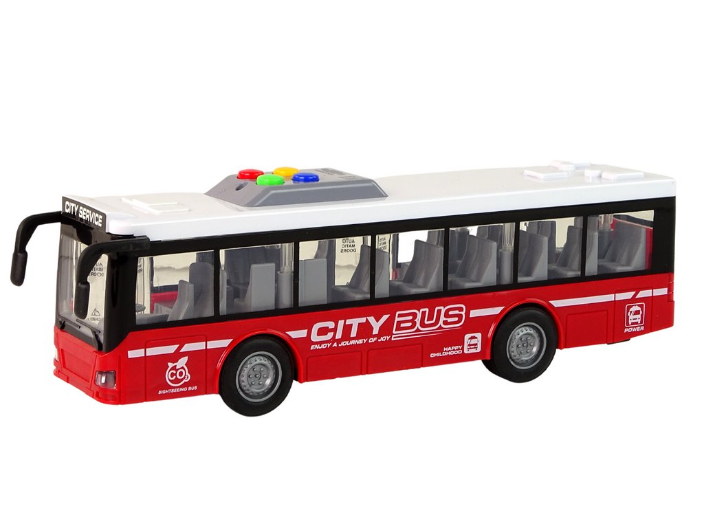 Súrlódó meghajtású autóbusz fényekkel és hangokkal 1:16 piros