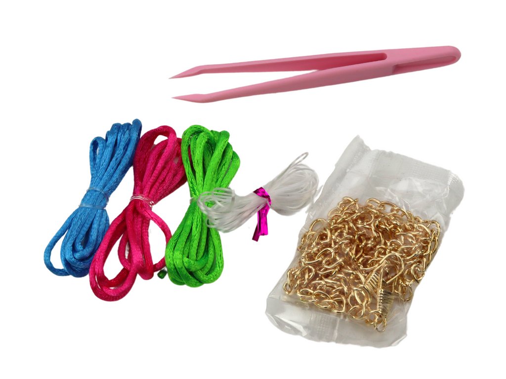 Az ékszerdoboz belseje rengeteg különféle gyöngyöt és medált rejt, amelyek egyedi dizájn létrehozására inspirálnak. 3 különböző színű zsinórt is találsz: rózsaszín, zöld és kék, valamint egy zsinór, amely még több variálhatóságot és stíluslehetőséget tesz lehetővé.