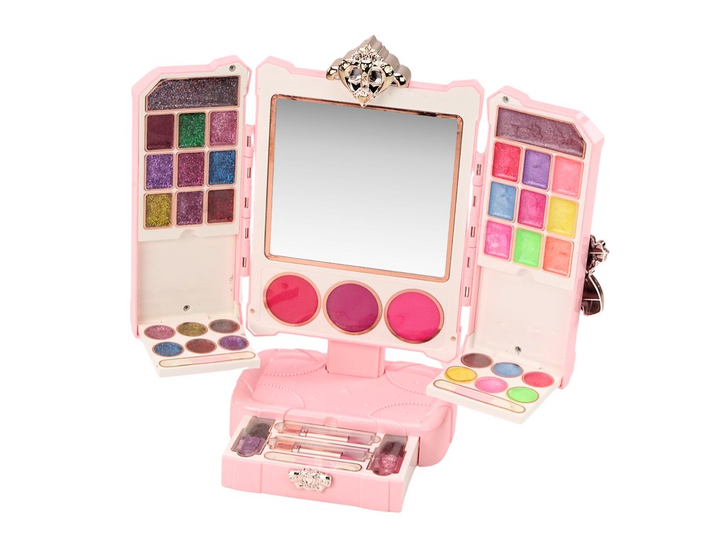 A szépségkészlet minden kis szépségrajongó álma! Az állványon található lágy rózsaszín színű, elegáns ezüst árnyalatokkal díszített tükör nem csak megjelenésével, de funkcionalitásával is elbűvöl.
