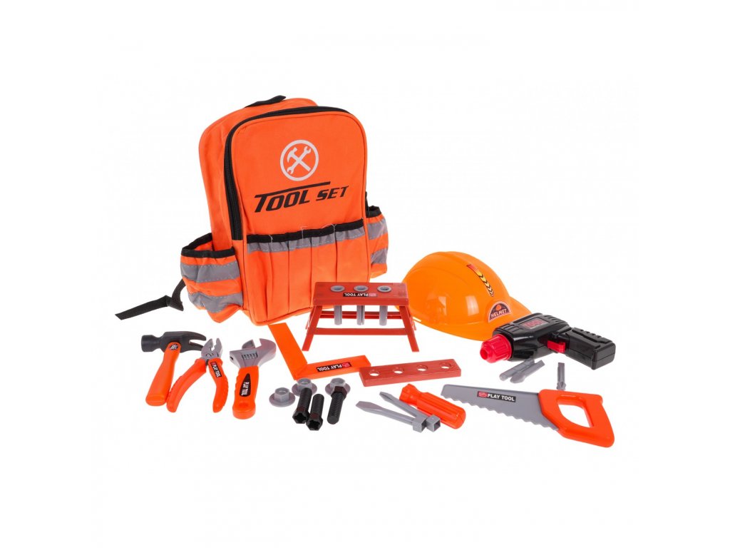 Jól felszerelt szerszámkészlet kényelmes hátizsákban 3 éves kortól gyerekeknek. A hátizsák egy fő cipzáras rekesszel, külső zsebekkel és állítható pántokkal rendelkezik. A felszereléshez többek között egy fúró is tartozik, mely 2 db AA 1,5 V-os elemmel működik (nem része a csomagnak). Az eszközökkel való játék pozitívan befolyásolja a gyermek kreativitását és kézügyességét.