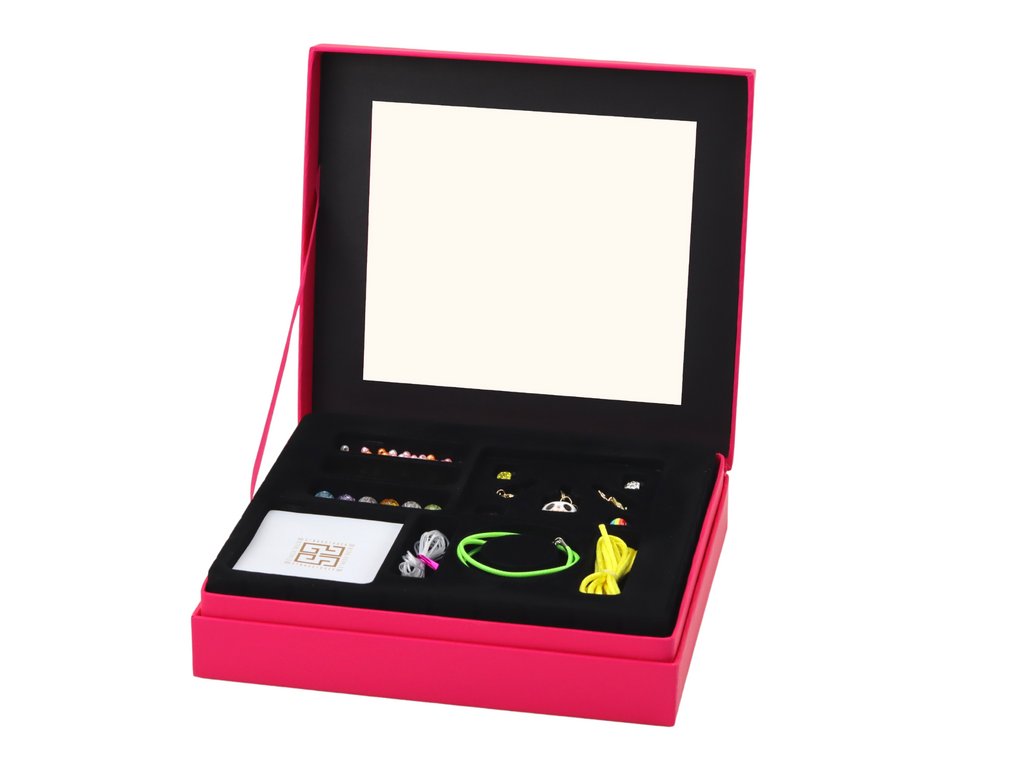Szettünk másik előnye az elegáns rózsaszín doboz. Nemcsak praktikus megoldás az ékszerek tárolására, hanem ideális módja ennek az ajándéknak az egyediségének hangsúlyozására is. Hagyja, hogy gyermeke élvezze a kézzel készített műalkotások készítését és viselését!