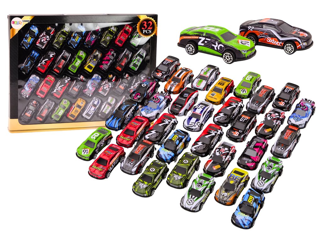 Játékautók rugós mechanizmussal színes 32 darabos készlet