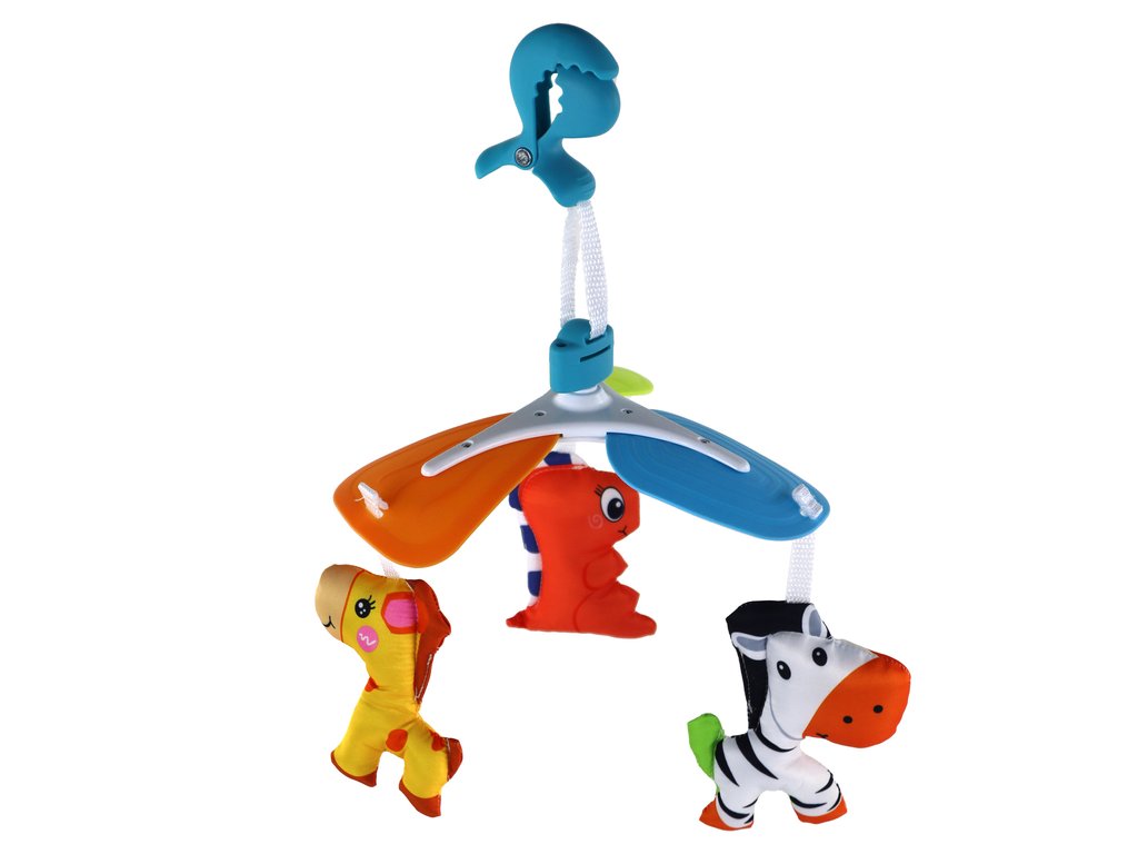 A körhinta speciális klipszel van felszerelve, amely könnyen és biztonságosan rögzíthető bárhová. Így rögzíthető a kiságy széléhez, a babakocsi vállpántjához vagy a babahordozó pántjaihoz.