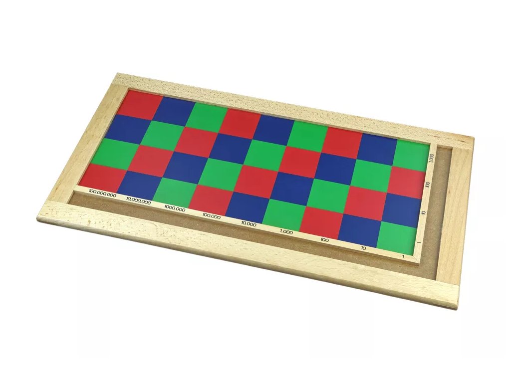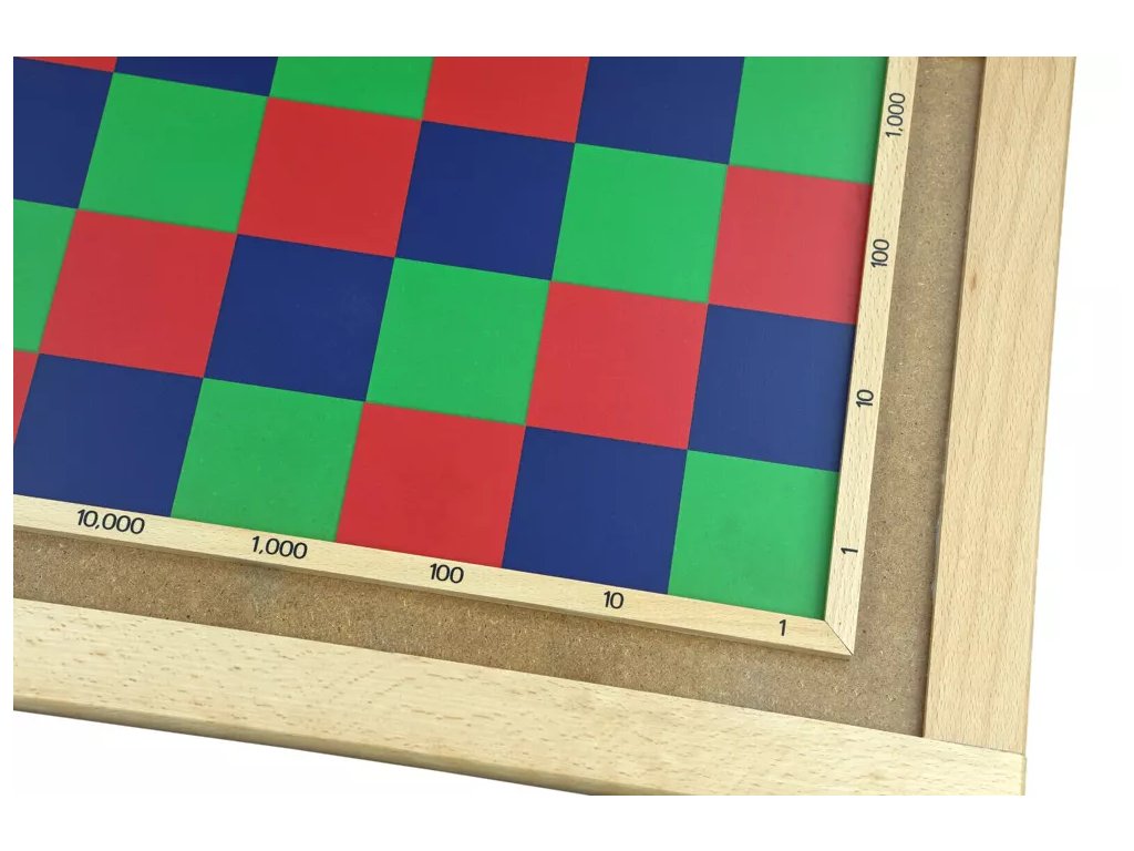 - Fából készült tábla háromszínű sakktáblával.