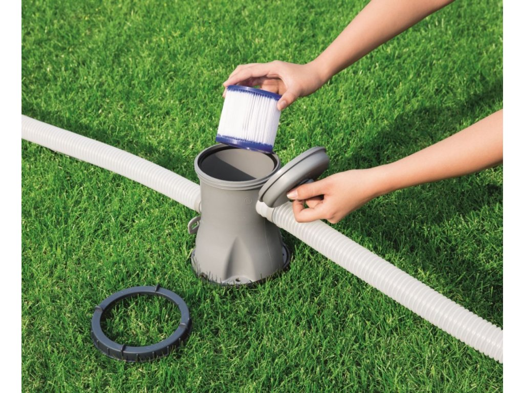 A patronos medenceszűrő a szennyeződések és a vízben található lerakódások felfogására szolgál. A medence vize áthalad egy patronos papírszűrő betéten, és a mechanikai szennyeződések felfogják ezt a betétet, majd a tiszta vizet visszajuttatják a medencébe. A készletben 2 db szűrő található.