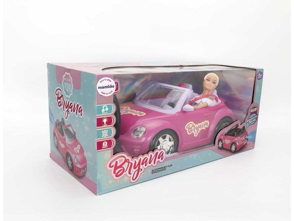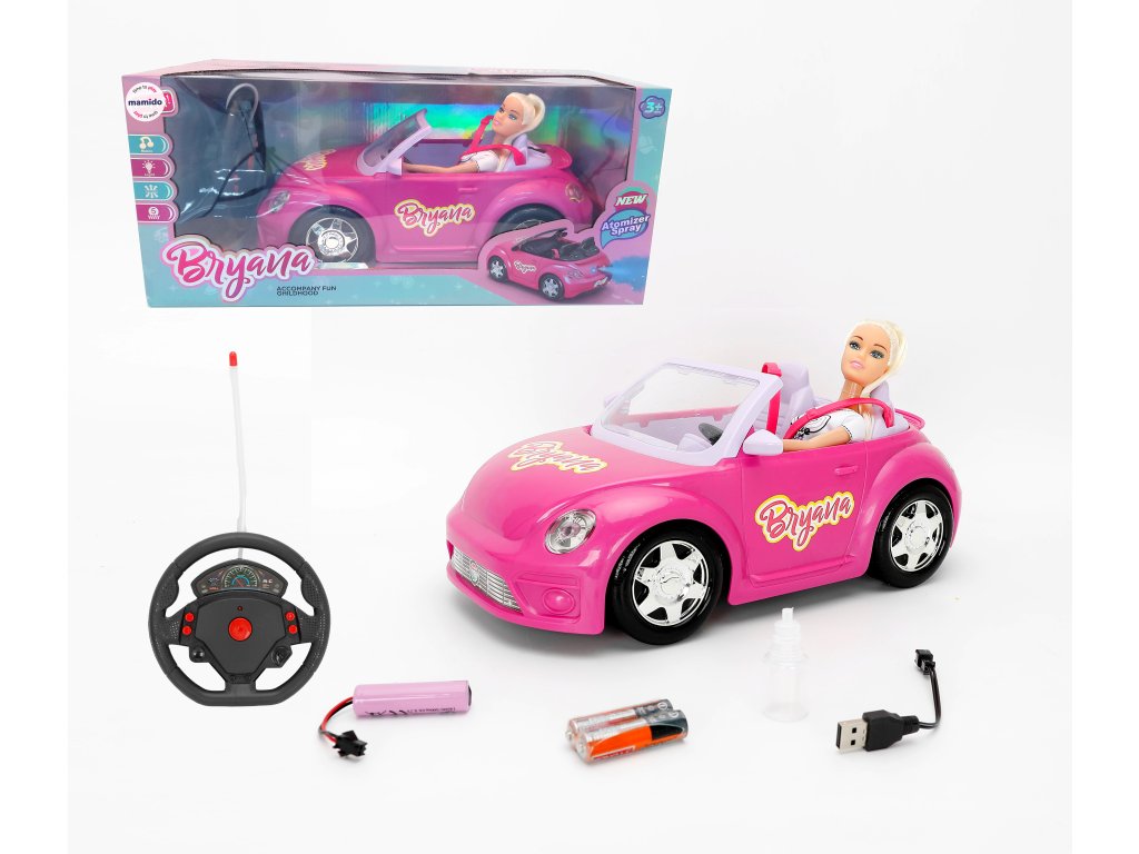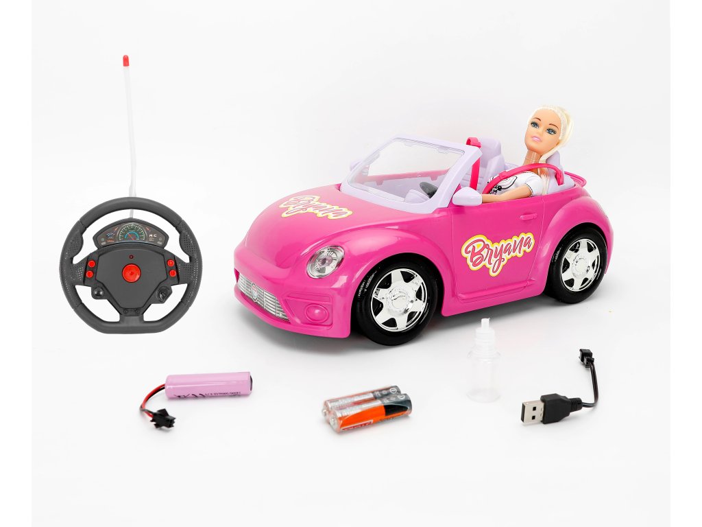 Egy stílusos babát modern, távirányítású rózsaszín kabrióval minden kis divat- és autókedvelőnek örömet szerez. Az autó valósághű részleteket kínál – világító első lámpák, kormány vezérlőkkel és még füsthatás is a kipufogóból. A baba a készlet része, és közvetlenül az autóba ültethető, így a játék még szórakoztatóbb és élénkebb.