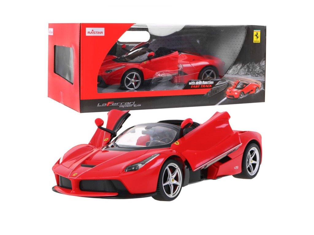 Bemutatjuk Önnek a tökéletesen megtervezett Ferrari LaFerrari Aperta modellt , amely a részletekre maximális odafigyeléssel készült. A jármű kiváló minőségű ABS műanyagból és a legjobb minőségű mechanikai és elektronikus alkatrészekből készül. Az autó rendkívül manőverezhető, irányítható és dinamikus. Gumi kerekekkel rendelkezik, amelyek utánozzák a gumiabroncsokat és a LED-es lámpákat. A jármű első része beépített lengéscsillapítókkal rendelkezik. Kényelmes markolat a távirányítókon előre és hátra kormányzás, valamint jobbra és balra kanyarodás. A jármű alján egy be-/kikapcsoló található. Az autó a valódi járműmodellek hűséges ábrázolása. Az autó 5 db AA elemmel működik (nem tartozék). A játék 6 évesnél idősebb gyermekek számára készült, és CE tanúsítvánnyal rendelkezik.