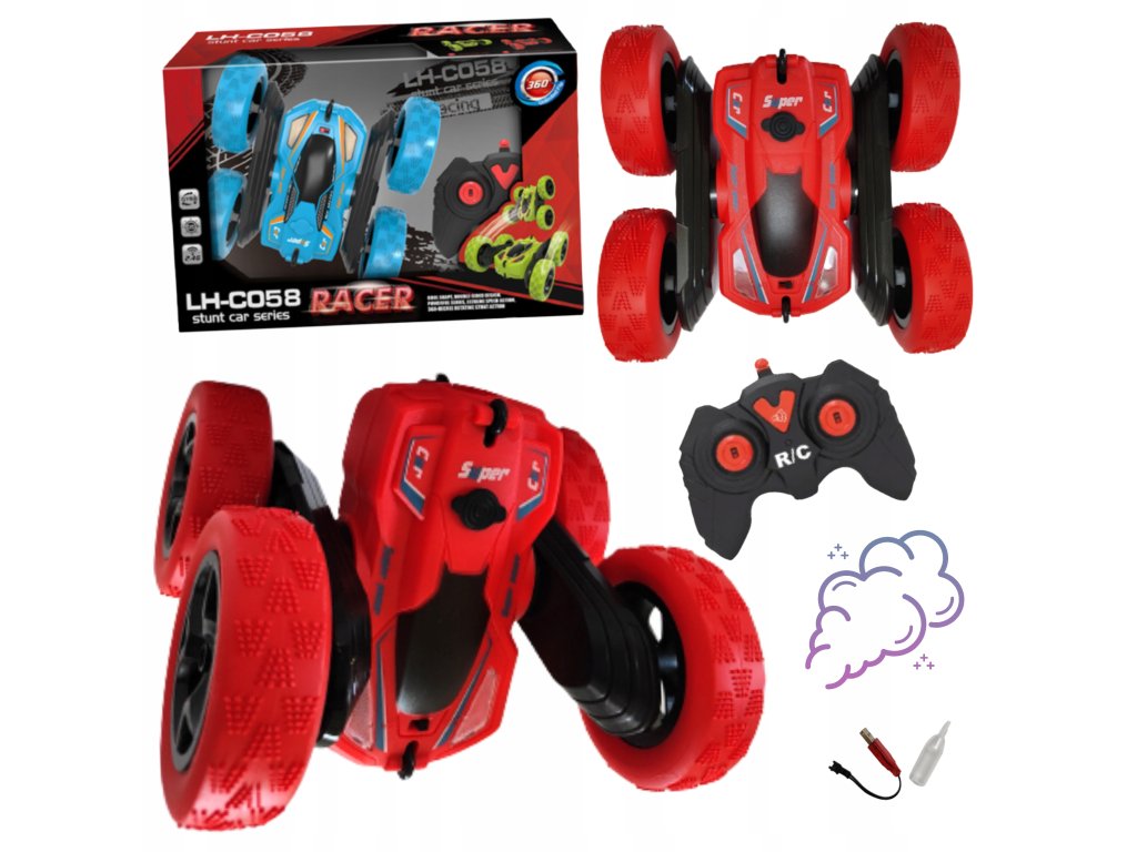 Éld át az adrenalindús utazást egy RC kaszkadőr autóval, amely nemcsak gyors meneteket, hanem lenyűgöző 360°-os fordulatokat és kaszkadőr trükköket is képes végrehajtani. Kétoldalas kialakításának köszönhetően soha nem marad felborítva – felborulás után is folytatja az utat. A speciális vízpára effektus még nagyobb show-t és szórakozást nyújt az akcióhoz.