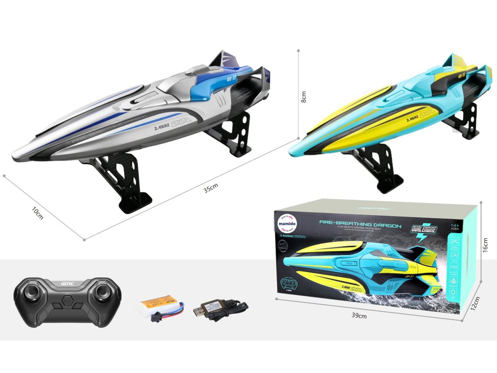Hódítsa meg a vízfelszínt kategóriája egyik leggyorsabb távirányítású hajójával. A távirányítású hajó eléri a 30 km/h sebességet, és az erőteljes kettős motornak köszönhetően még a nehezebb vízi körülményeket is bírja.