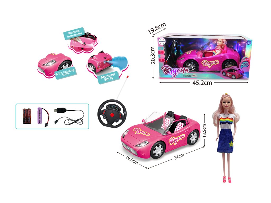 Egy stílusos babát modern, távirányítású rózsaszín kabrióval minden kis divat- és autókedvelőnek örömet szerez. Az autó valósághű részleteket kínál – világító első lámpák, kormány vezérlőkkel és még füsthatás is a kipufogóból. A baba a készlet része, és közvetlenül az autóba ültethető, így a játék még szórakoztatóbb és élénkebb.