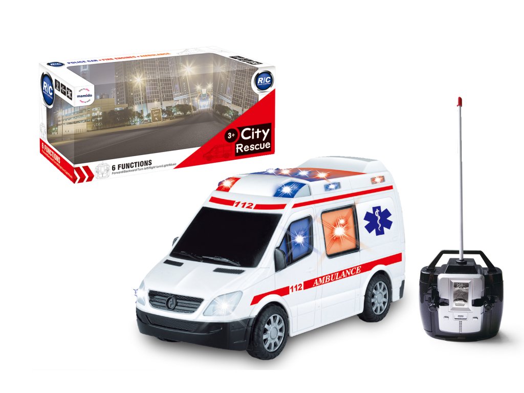 A valósághű mentőszolgálati távirányítós kisautó nagyszerű, akciódús játékhelyzeteket kínál a gyerekeknek szirénákkal és városi utcai bevetésekkel. A modell tud előre / hátra haladni és oldalra fordulni. A távirányító egyszerű, már kisgyermekek számára is alkalmas, és bonyolultságtól mentes, egyszerű kezelést kínál.