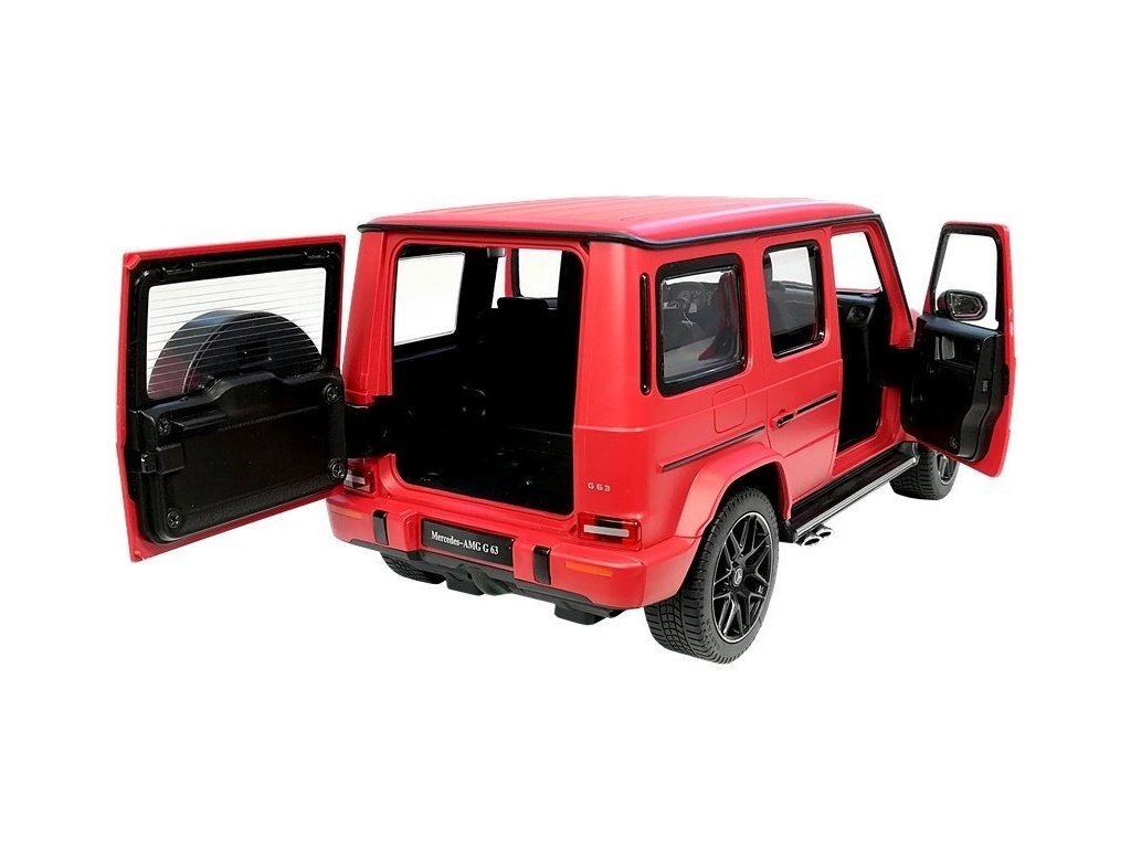 A távirányítós Mercedes G63 piros színben a valódi autó 1:14-es méretarányú mása. Az autó a vezérlőnek köszönhetően előre-hátra mozog, fordul és fékez. Terep jellegének köszönhetően otthon és a kertben egyaránt használható. A jármű fényeffektusokkal van felszerelve, a lámpák világítanak, amikor az autó be van kapcsolva, és amikor halad.