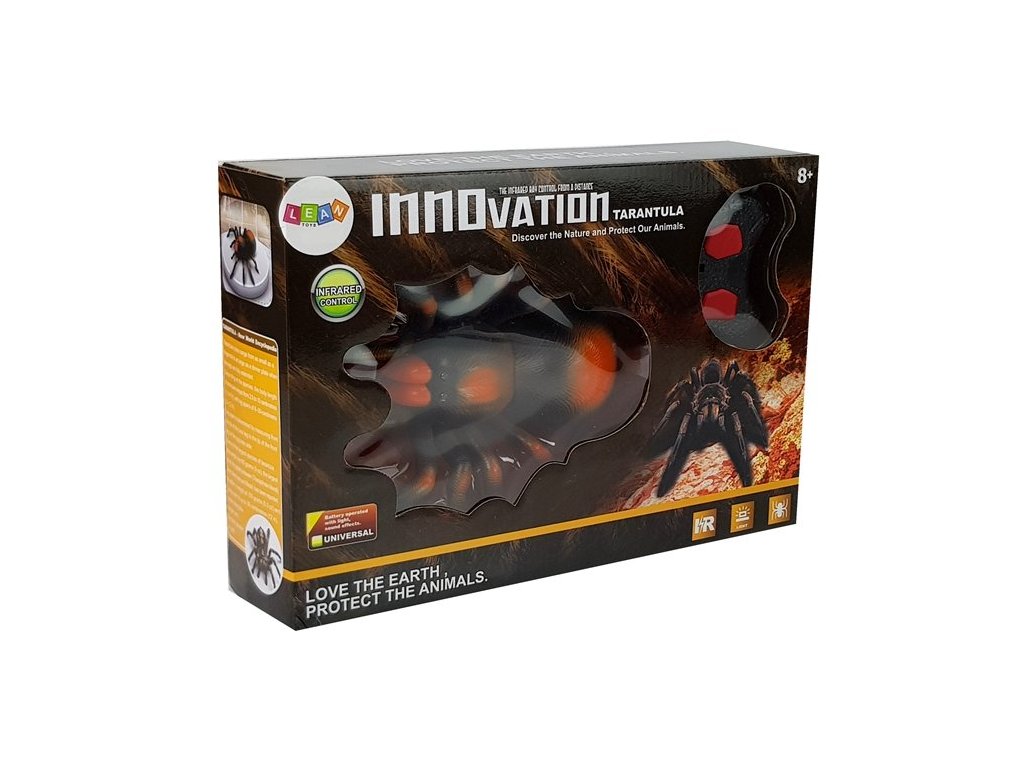 A távirányítós pók nagyszerű játék azoknak a gyerekeknek, akik saját terráriumról álmodoznak. A narancs-fekete tarantulának ragyogó szeme van. A távirányítónak két gombja van, amelyek segítségével a pók előre és hátra sétálhat.