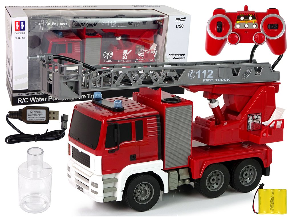 Távirányított tűzoltóautó vízzel és mozgó létrával