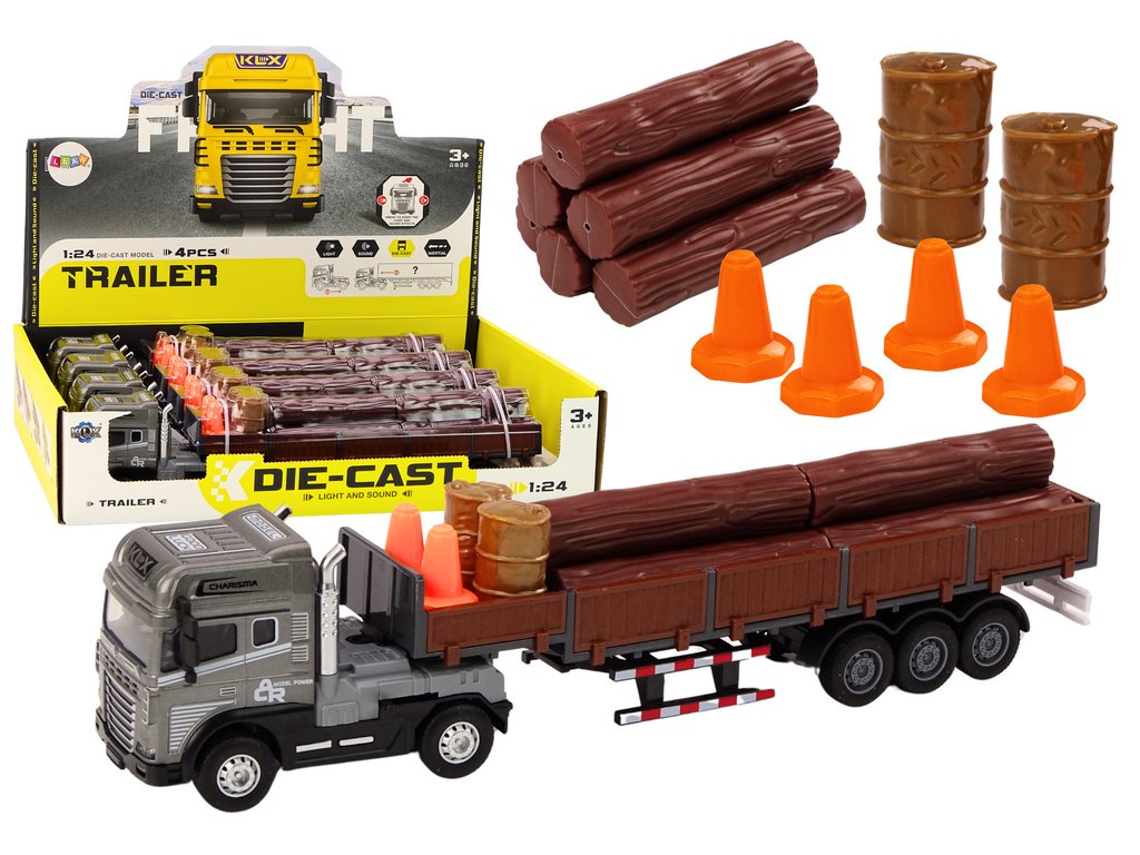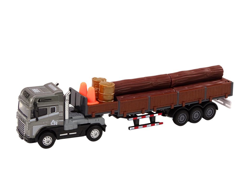 Az utánfutó levehető oldalakkal rendelkezik, ami megkönnyíti az áruk be- és kirakodását és növeli a játék lehetőségeit. A pótkocsin négy útkúp található, amelyek segítségével útmunkákat vagy más, helybiztonságot igénylő helyzeteket szimulálhatunk. A modell két hordót tartalmaz, amelyek rakományként használhatók különféle anyagok szállítására. A pótkocsi fahasábokkal van megrakva, ami lehetővé teszi az építőipari vagy erdészeti anyagok szállításának szimulációját. A teherautó meghajtóval rendelkezik, amely lehetővé teszi a modell önálló mozgását.