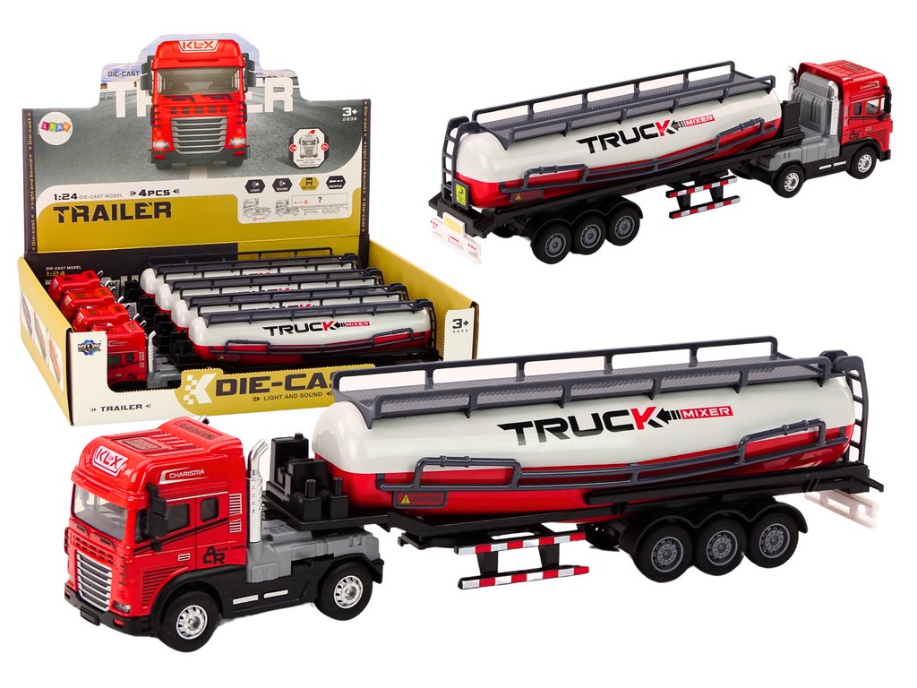 Teherautó pótkocsival TIR tank 1:24 Teherautó piros hangokkal