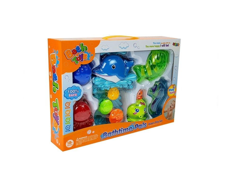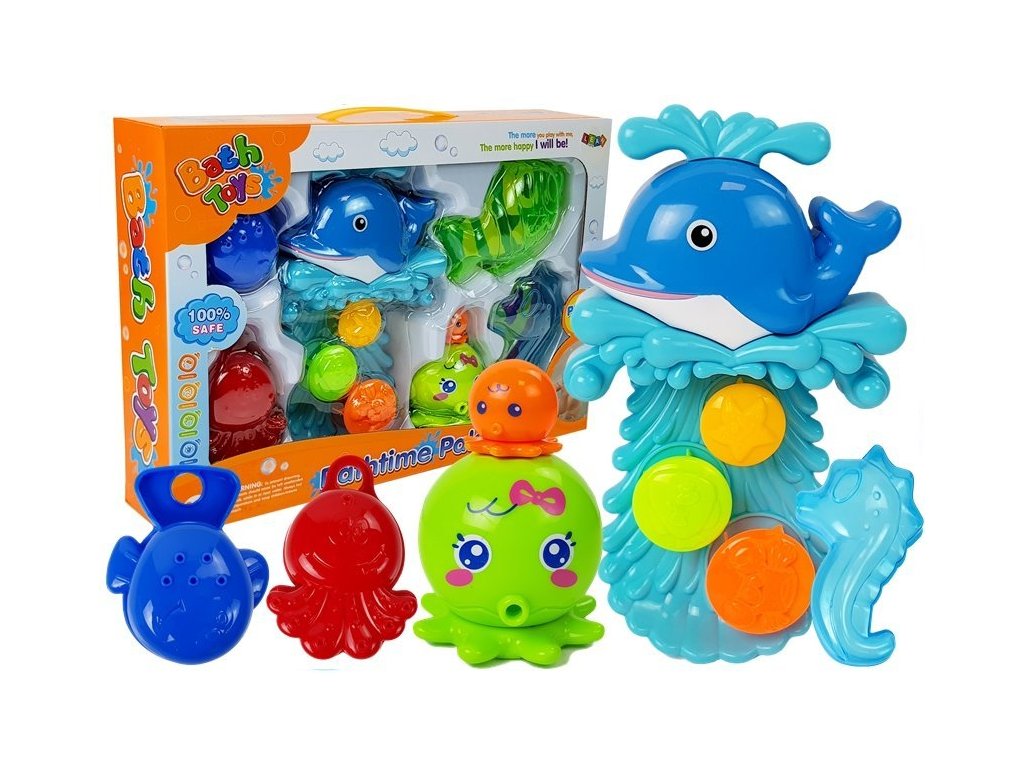 Tengeri világ, számos forma és szín vonzza gyermeke figyelmét. Egy nagy delfin a vízáram hatására gyönyörű vízesést hoz létre, amelyet gyermeke megcsodálhat. A játék hátuljára tapadókorongok vannak felszerelve, így könnyen rögzíthető a fürdőkádhoz.
