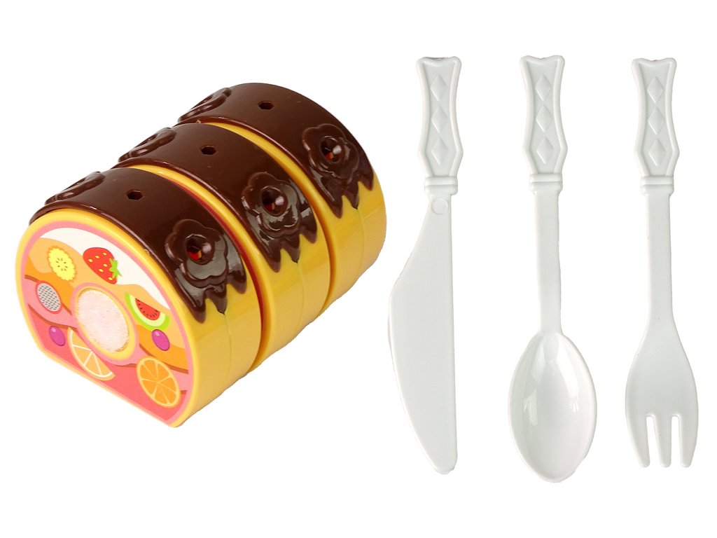 A torta hat darabból áll, amelyek összeilleszthetők. Vágás után különféle gyümölcsöket fogunk látni, amelyeket gyermeke felfedezhet. Egy speciális műanyag kés lehetővé teszi a darabok egymástól való elválasztását.