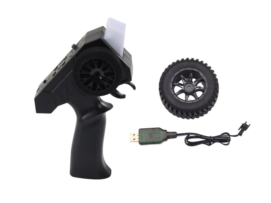 A jármű funkcionális első és hátsó lámpákkal is fel van szerelve, ami nemcsak valósághű megjelenést kölcsönöz, hanem kibővíti a játék lehetőségeit gyenge fényviszonyok mellett vagy éjszaka is. A vezérlés a legmodernebb 2.4G távirányítóval történik, amely biztosítja a jármű pontos irányítását. A távirányító a mozgások teljes skáláját és a kétlépcsős sebességváltást teszi lehetővé, lehetővé téve a jármű tempójának az egyéni igényekhez és preferenciákhoz való igazítását. Ezenkívül a vonófék funkció lehetővé teszi a jármű gyors és biztonságos megállítását, valamint az akadályokra való könnyű reagálást.