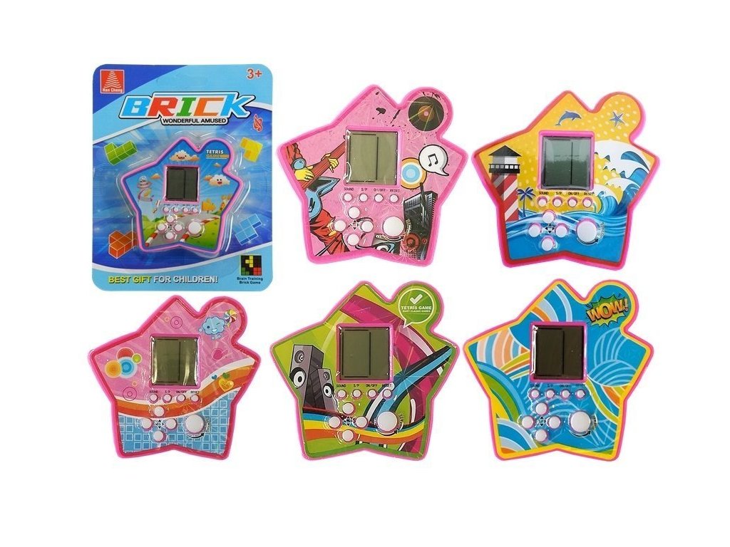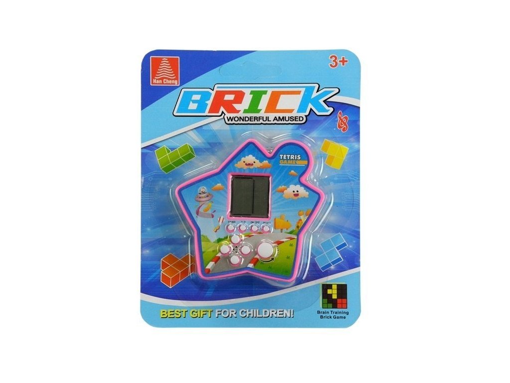 A Tetris az egyik legnépszerűbb elmetréning játék. A feladat különböző formájú blokkokat forgatni úgy, hogy azok a táblán elrendezve kitöltsék a teljes sort. Az elkészült sor eltűnik, így több tételnek marad hely, amíg a kijelző el nem fogy. A játék során ellenőrizheti, hogy melyik tégla lesz a következő, így a felhasználó analitikusan gondolkodhat arról, mi legyen a következő lépése. Minden sor eltávolításával a játék sebessége nő, és a tárgyak gyorsabban esnek. A csillag alakú tokban lévő elektronikus játék nagyon könnyű, ami kis méretével párosulva zsebre rakható opcióvá teszi, amit bárhová magunkkal vihetünk. Kijelzőből és a játékfunkciókért felelős fehér gombokból áll. Segítségükkel elindíthatjuk és leállíthatjuk a játékot, szüneteltethetjük a játékot, elnémíthatjuk a hangokat, vagy alaphelyzetbe állíthatjuk a táblát, hogy elölről kezdhessük a blokkok lerakását. A többi gomb a játék közbeni navigációra, valamint a blokkok forgatására szolgál. Az elektronikus játék zsebváltozata gyermeknek és felnőttnek egyaránt kellemessé teszi az időt. Tökéletes lesz az órák közötti szünethez, valamint a buszon vagy otthon pihenés közben.