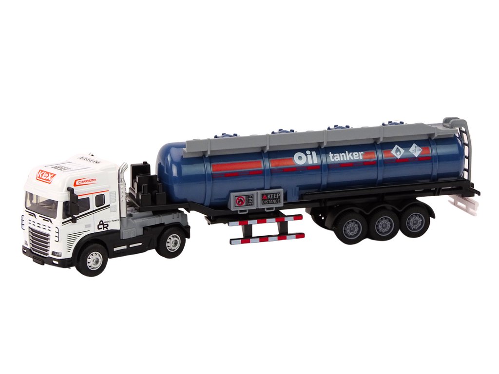 Az üzemanyagtartályos pótkocsis modell teherautó egy pontos 1:24 méretarányú modell. Számos olyan funkcióval rendelkezik, amelyek valósághűvé és lenyűgözővé teszik a játékot. A modell tökéletesen reprezentálja a valódi járművet 1:24-es méretarányban, amely lehetővé teszi az összes elem és arány részletes megjelenítését. A teherautó fülkéje fehér színű, amely klasszikus megjelenést kölcsönöz a járműnek. Az utánfutó szürke, tartály alakú, ami lehetővé teszi az üzemanyag szállítás szimulációját. A teherautó meghajtóval rendelkezik, amely lehetővé teszi a modell önálló mozgását. Az utánfutó levehető, így a teherautó fülkéje és az utánfutó külön is használható, kibővítve a játéklehetőségeket.