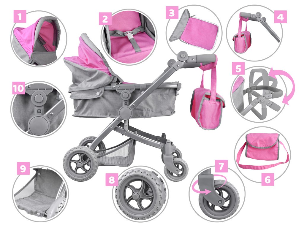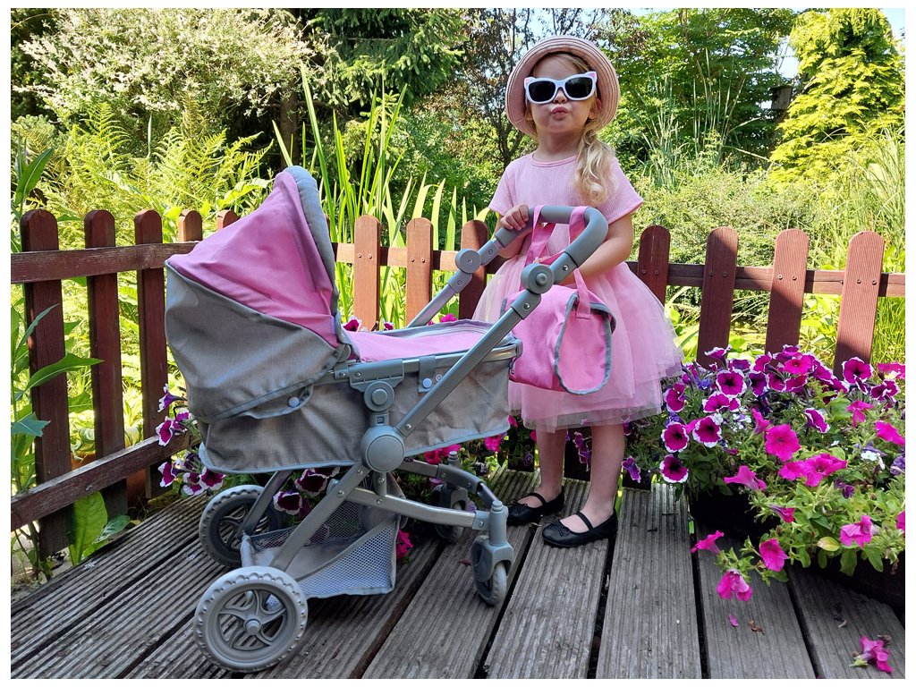 Egy bájos, gyönyörű színekben pompázó babakocsit mutatunk be, mely tökéletes ajándék lesz minden 3 évesnél idősebb lánynak. A babakocsi könnyű, mozgékony és könnyen kezelhető, összecsukás után egyszerűen bepakolhatod autóba vagy más szállítóeszközbe .