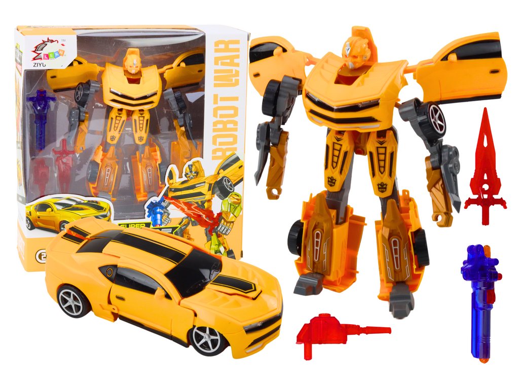 A 2 az 1-ben Robot Car egy rendkívüli modell, amely egyesíti a sportversenyautó eleganciáját és egy nagy robot lenyűgöző alakját. A sárga színben lenyűgöz a részletes kidolgozottság,