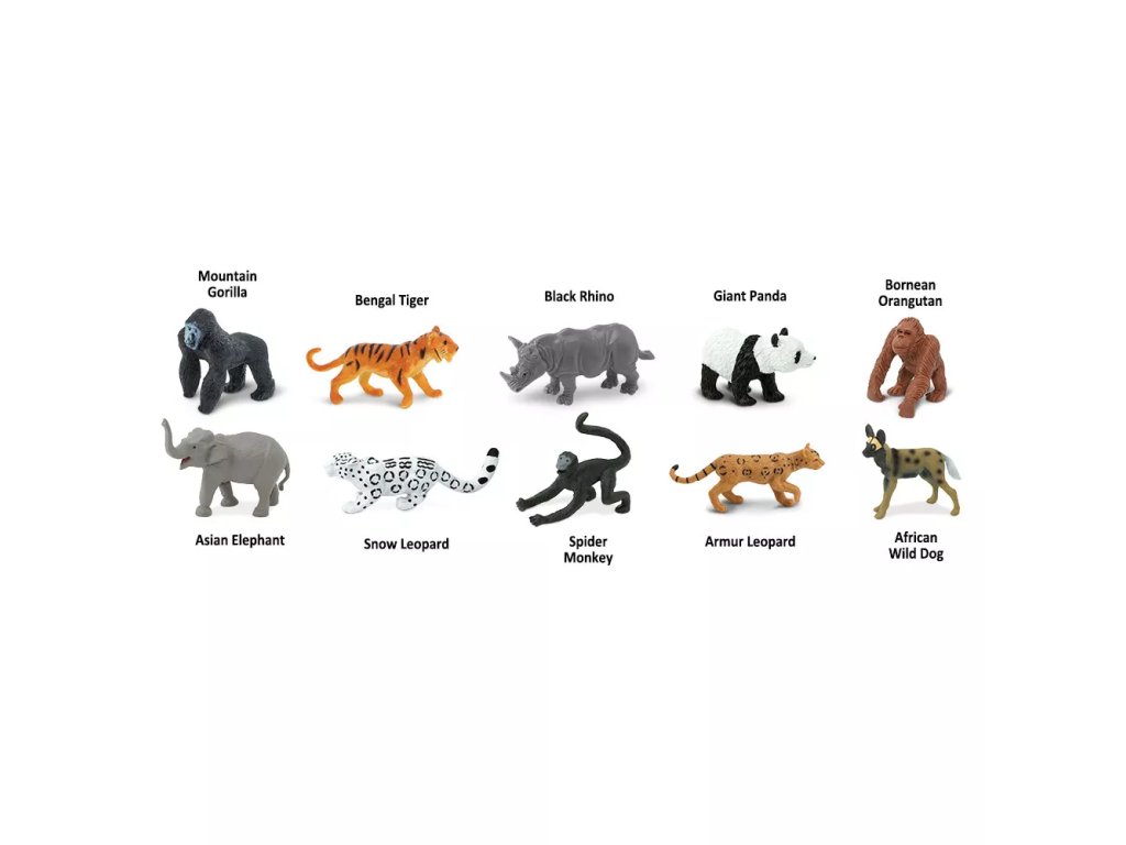 A tubus 10 kézzel festett figurát tartalmaz, amelyek a veszélyeztetett állatfajokat ábrázolják. A figurák a fajok játékos megismerését szolgálják, és visszahelyezhetők az újrafelhasználható csomagolásba.