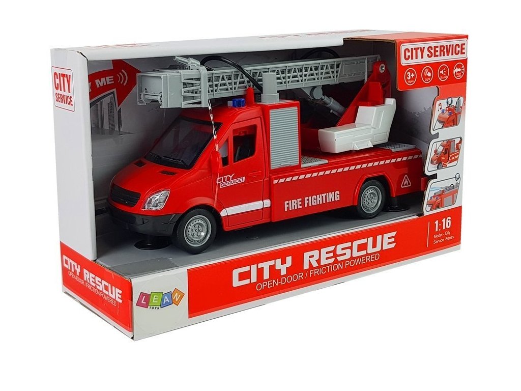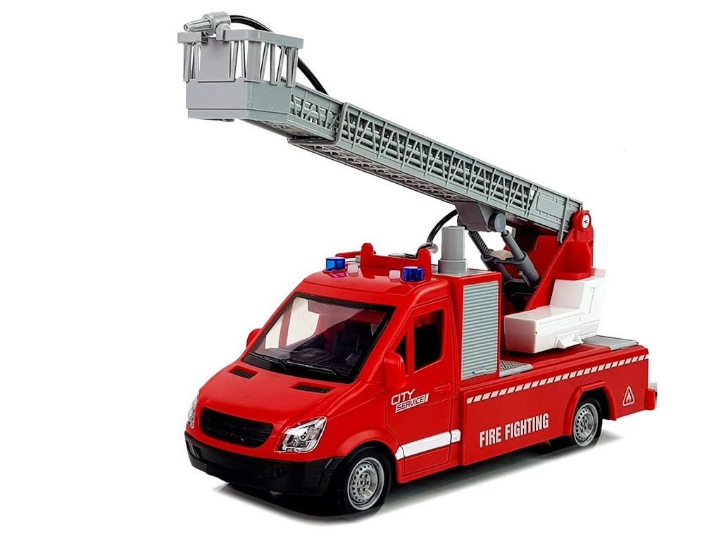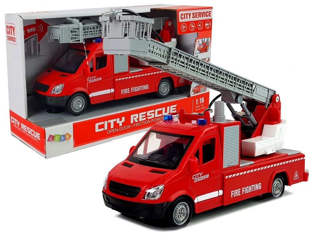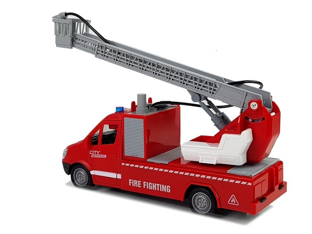 A mozgó létrával felszerelt tűzoltóautó előnye a hang- és fényeffektus. A tűzoltóautó 1:16 méretarányban készül. Az elülső oldalon egy kis víztartály van felszerelve, és a szivattyú megnyomására a víz elkezd kifolyni a tömlőből.
