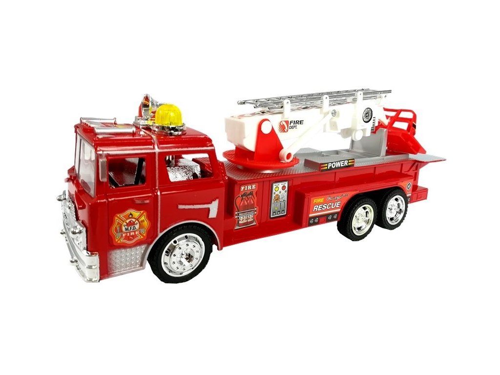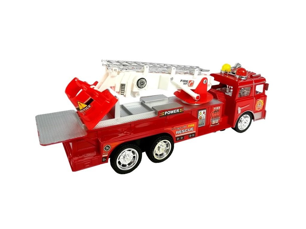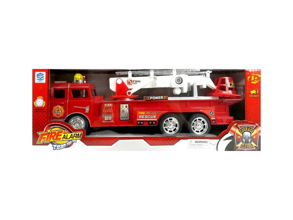 Nagy tűzoltóautó kis mentőknek. Behúzható forgó létra, 6 stabil kereke van és az egészet hangeffektusok kísérik.