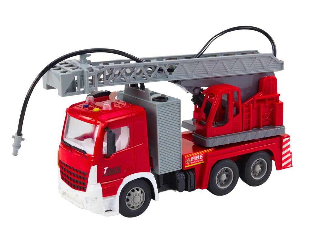 Menjen mentőakcióra egy kihúzható karú tűzoltóautóval . Ez a tartós modell állítható létrával és funkcionális tűzoltótömlővel minden kihívásra készen áll. A fény- és hangeffektusok dinamikus és valósághű élményt adnak a játéknak. A súrlódó hajtás és a gumikerekek sima futást biztosítanak, a részletgazdag kidolgozás pedig a kis hősök fantáziáját inspirálja.