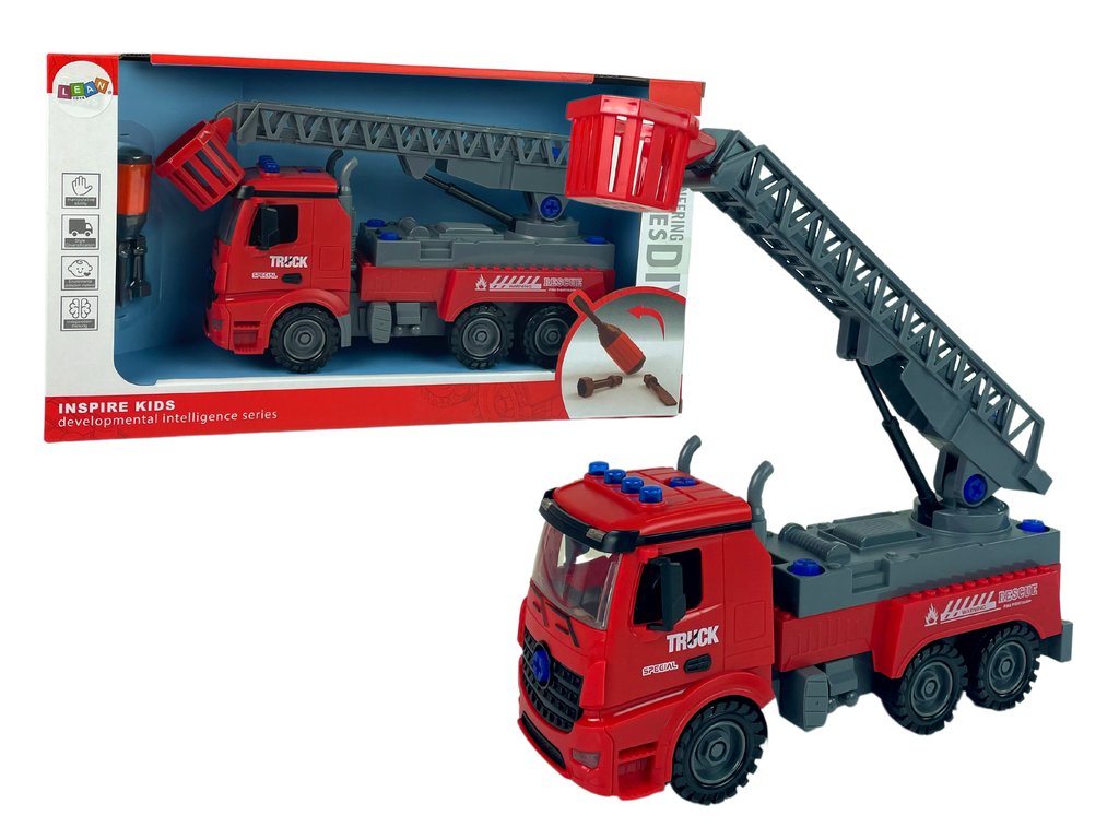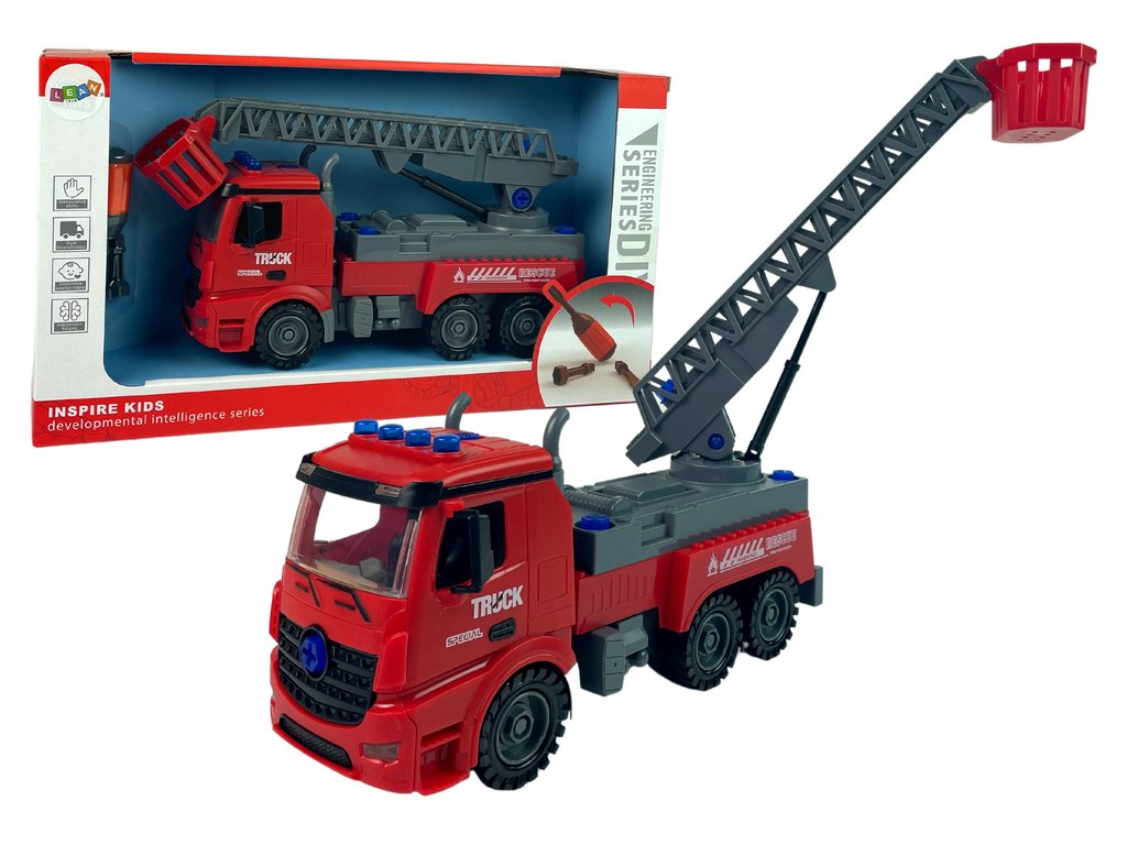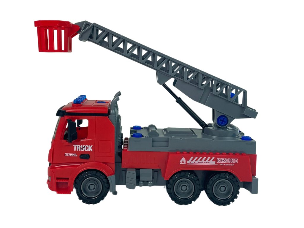A piros tűzoltóautó állítható létrával rendelkezik, amely fel-le mozgatható, valamint meghosszabbítható és rövidíthető. A játék közbeni 360 fokos elforgatás könnyebb hozzáférést és nagyobb elérést tesz lehetővé. Kis tűzoltója készen áll a cselekvésre! A játék szétszerelése és összeszerelése nagyon egyszerű. A szórakozás nagyon szórakoztató lesz, most már biztonságban érezheti magát, és otthon van egy személyes tűzoltója.