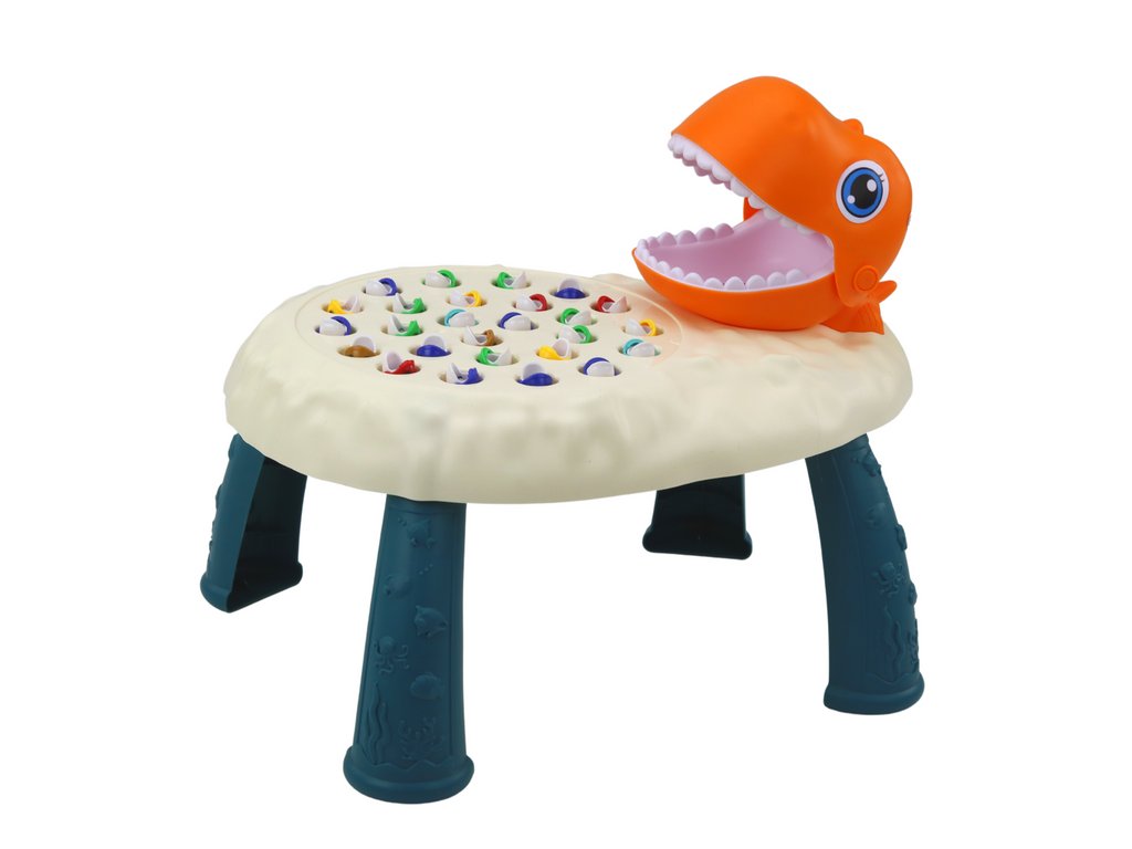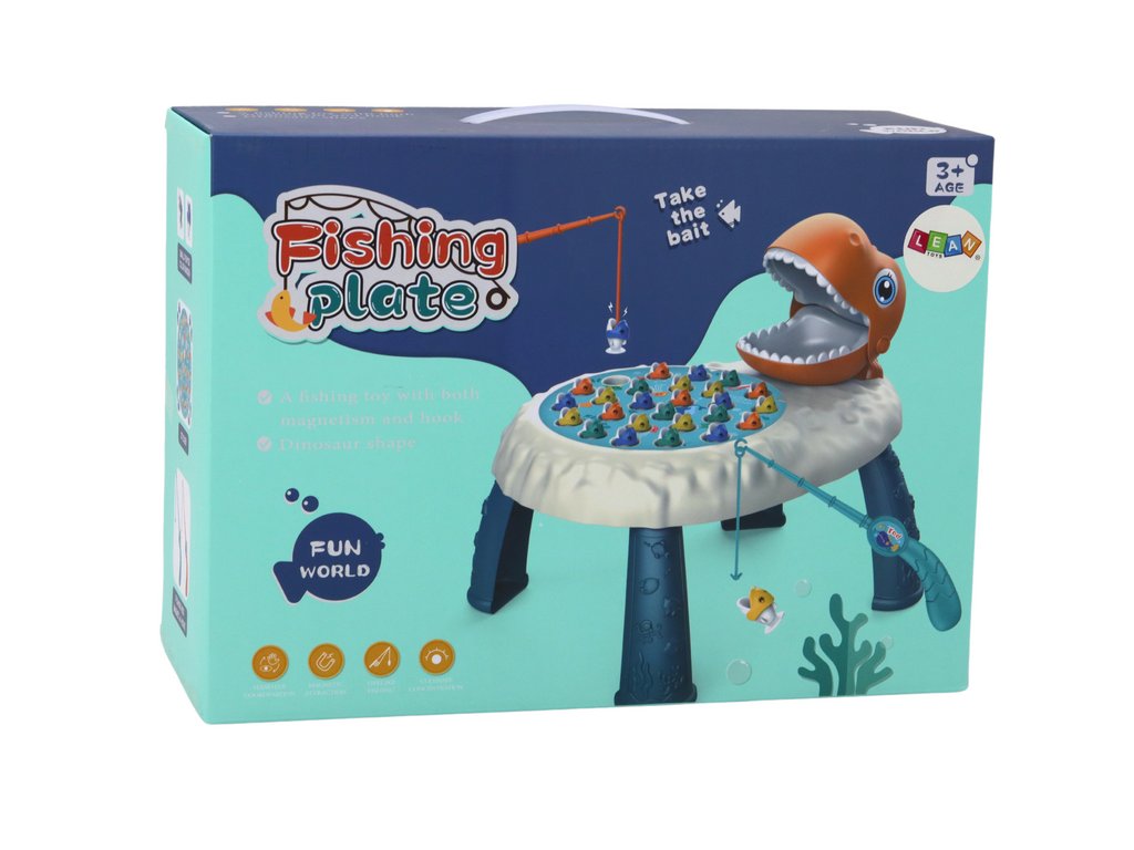 A játék központi eleme a narancssárga dinoszaurusz nyíló szája, amely minden szórakozás fókuszpontja. Oda helyezzük el a kifogott halakat, ami dinamikát és izgalmat ad a játéknak.