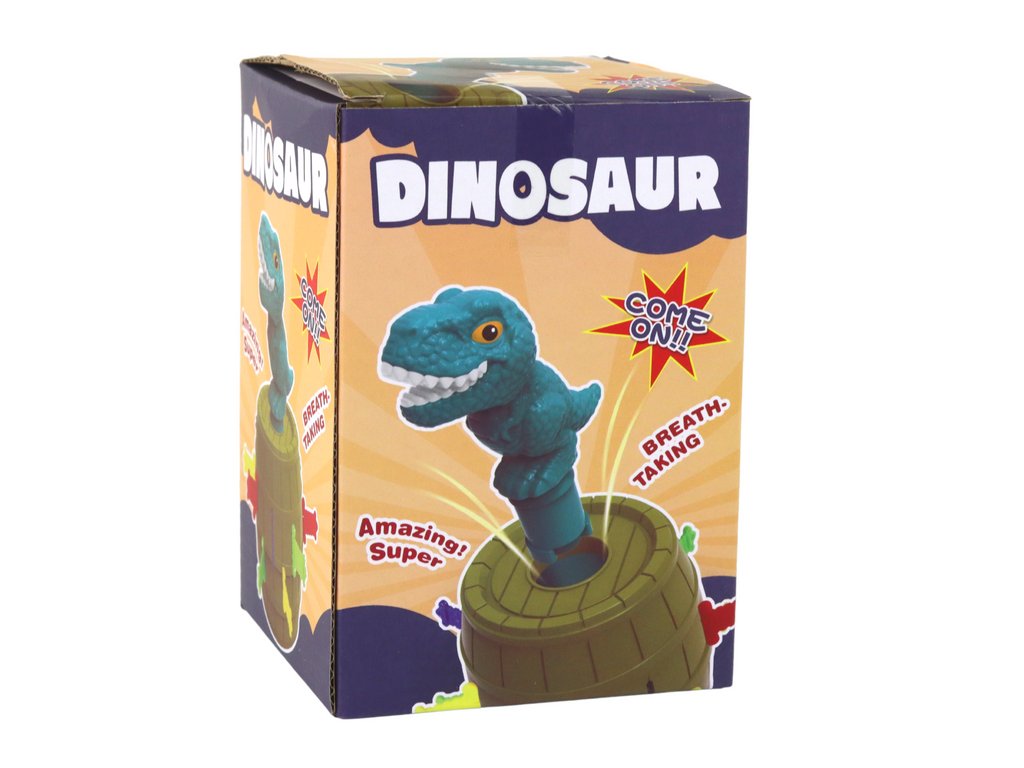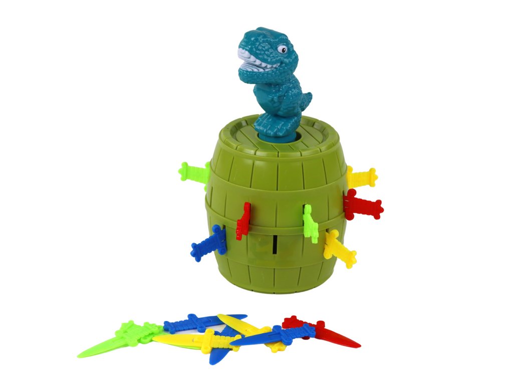 Aki véletlenül kiugrasztja a dinoszauruszt a hordóból, az veszít. Ez a játék nem csak készségeket fejleszt, hanem koncentrációra és együttműködésre is tanítja a gyerekeket és a felnőtteket. A színes elemek, mint például a kardok, még vonzóbbá teszik a játékot a legkisebb játékosok számára.