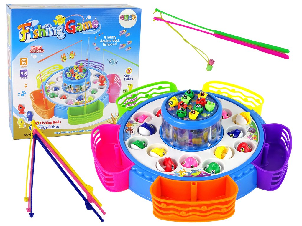 Amikor a tábla elindul, a játék hangokat ad ki, világít és forog. Ezután a halakat a megfelelő helyre kell tenni. És akkor elkezdhetünk játszani.