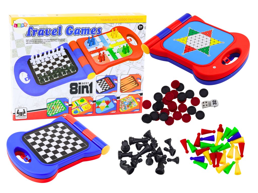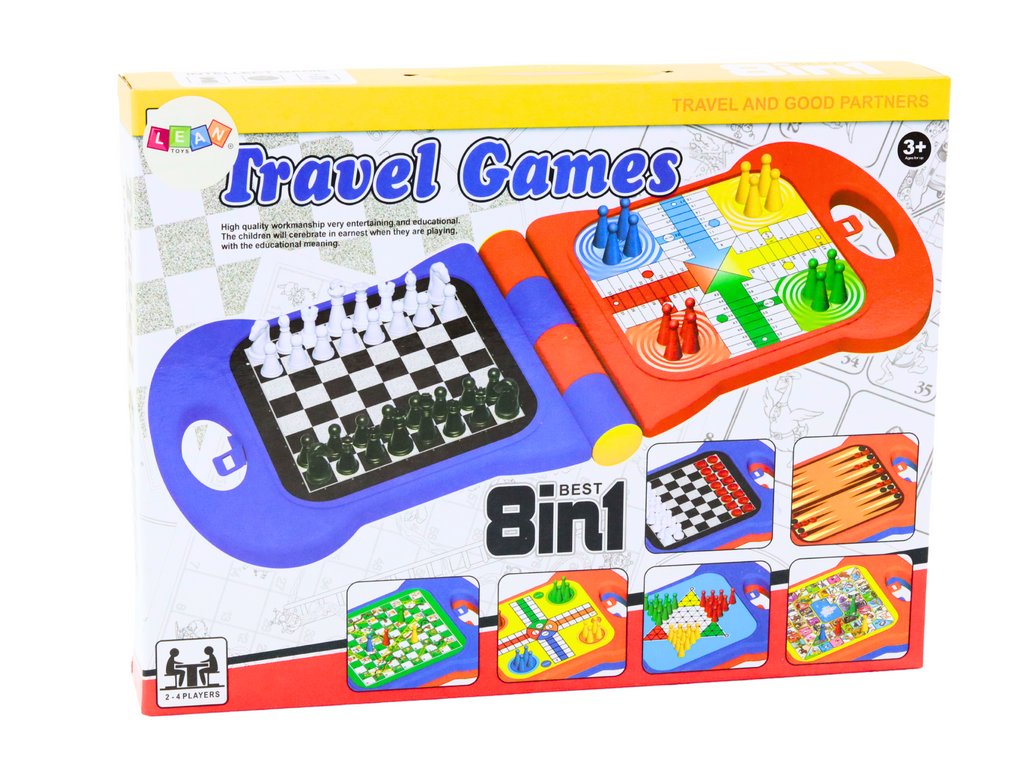 A 8 az 1-ben utazási játék egy kompakt készlet, amely nyolc klasszikus társasjátékot kínál, bármilyen alkalomra tökéletes. A készlet tartalmaz sakkot, dámát, ne haragudj embert, backgammont, libát, kígyókat és létrákat, dámát és ludót – minden játék órányi szórakozást és stratégiai gondolkodás fejlesztést biztosít. Hordozható méretének köszönhetően tökéletes utazáshoz, családi estékhez vagy baráti összejövetelekhez. Ez a készlet nagyszerű választás mindazok számára, akik változatos és lebilincselő szórakozást szeretnének élvezni.