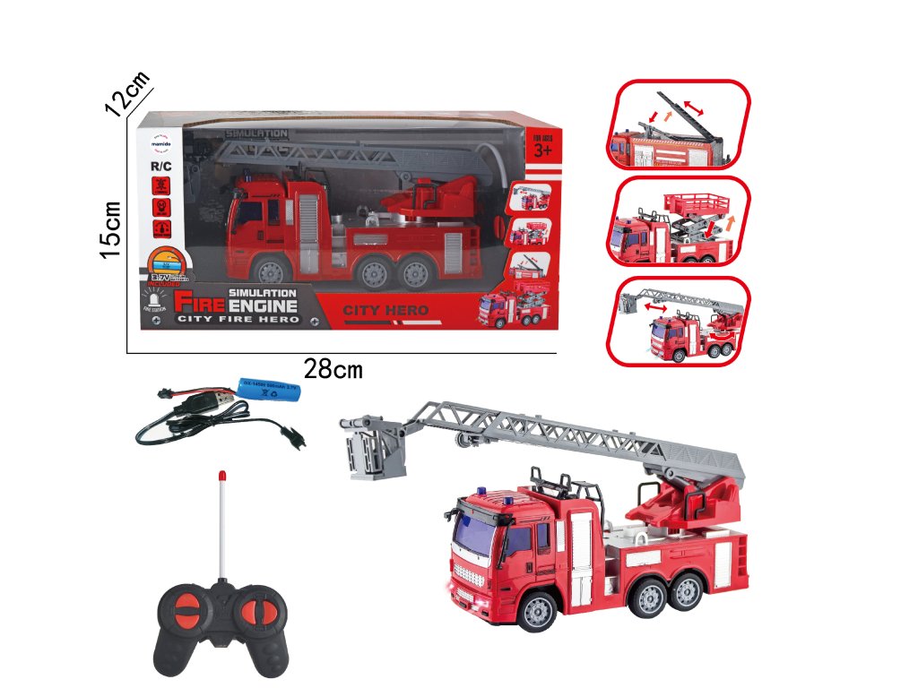 Légy a város hőse ezzel a valósághű, kihúzható létrás távirányítású tűzoltóautóval. A jármű fény- és hanghatásokkal van felszerelve, és könnyen vezérelhető a távirányítóval. A mozgatható létrának és a forgatható platformnak köszönhetően a gyerekek rengeteg akcióban vehetnek részt a város megmentése során.