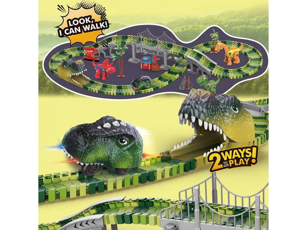 Adjon gyermekeinek korlátlan játéklehetőséget, és engedje, hogy felfedezzék a dinoszauruszok lenyűgöző világát ezen a fantasztikus versenypályán!