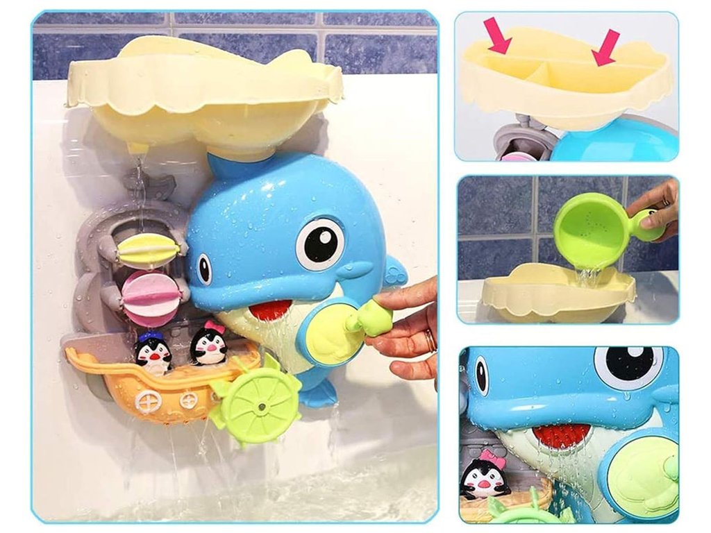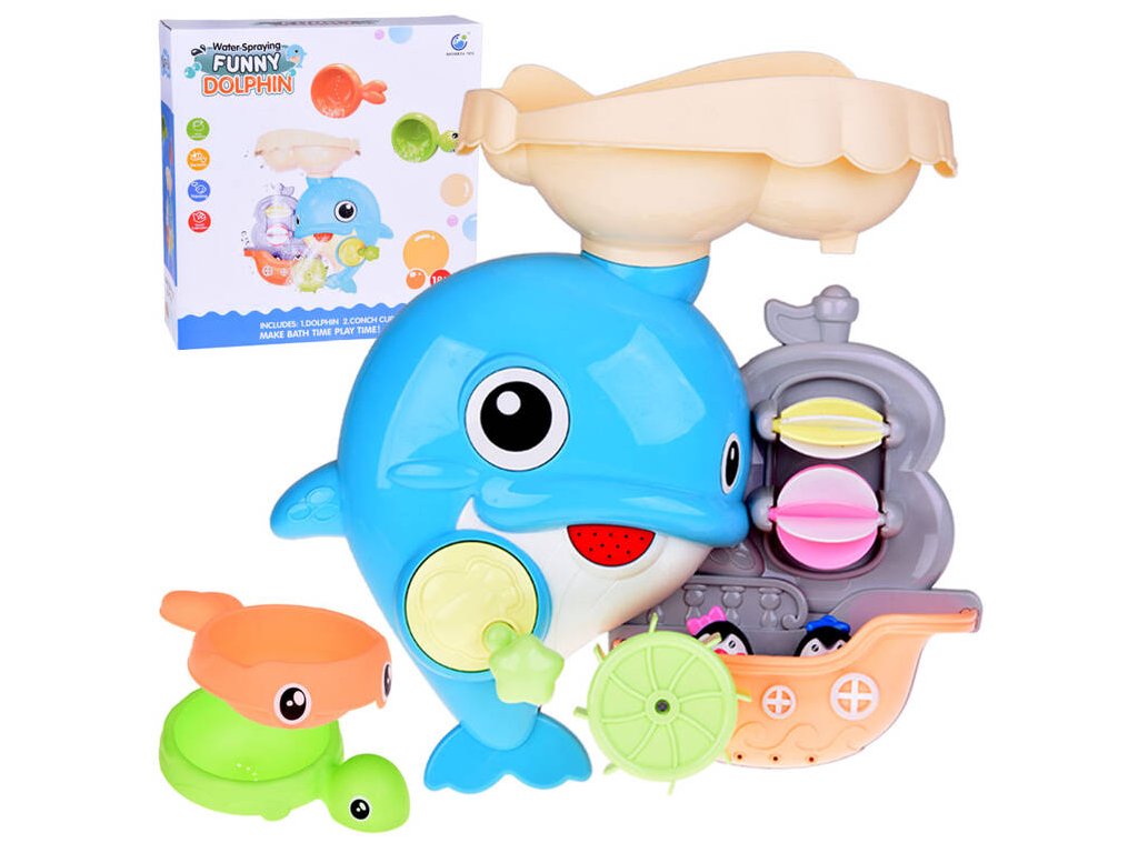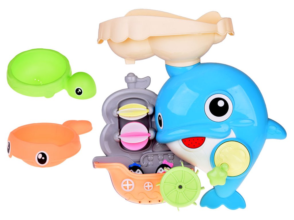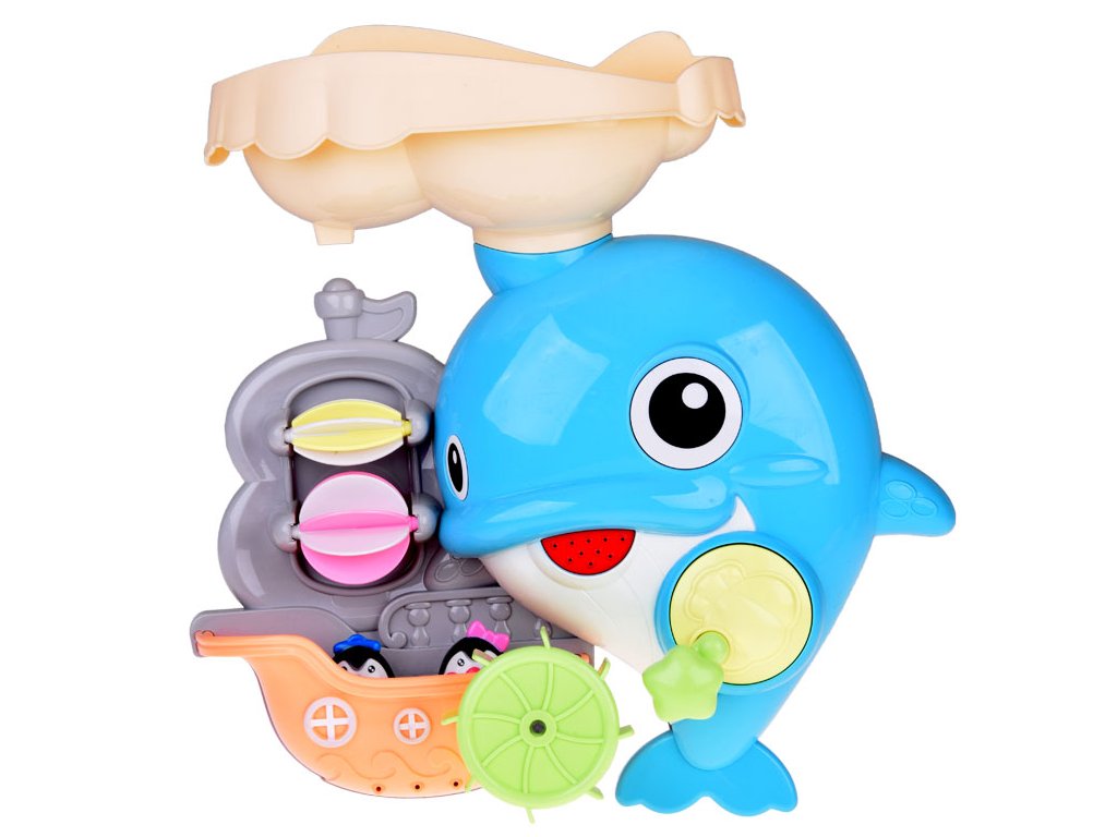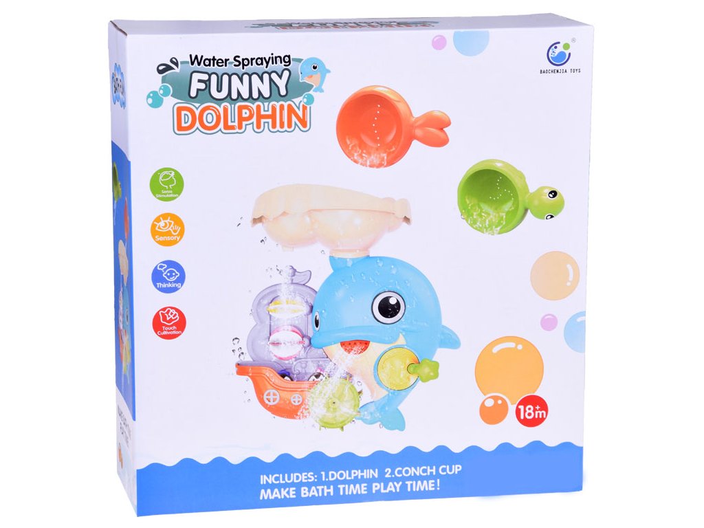A színes, vidám delfin nagyszerű fürdőjáték, amely vidámabbá teszi a vízi játékokat. A vonzó színekben pompázó delfin segítségével különféle játékokat találhatsz ki. A játék műanyagból készült, és sok meglepetést tartalmaz. A szájnyílás vízöntésre szolgál, körbejárhatóak, szemek és egy csónak kis pingvinekkel. A játék könnyen rögzíthető egy sima felületre a mellékelt tapadókorongok segítségével.