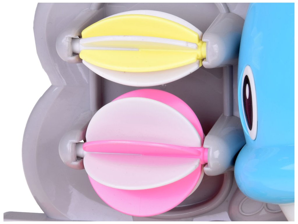 - a fejen lévő bézs színű tartály, amelybe vizet öntenek, elindítja a víz keringését a játék számára és így kezdődik a móka
