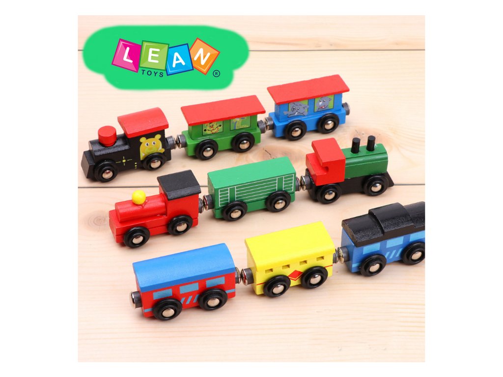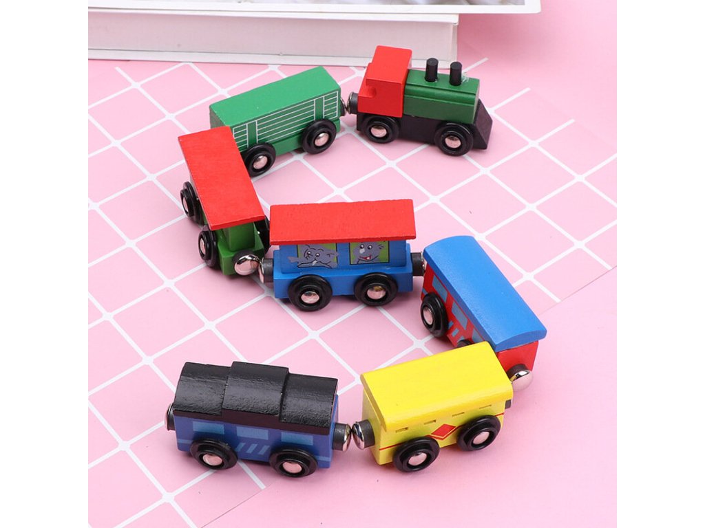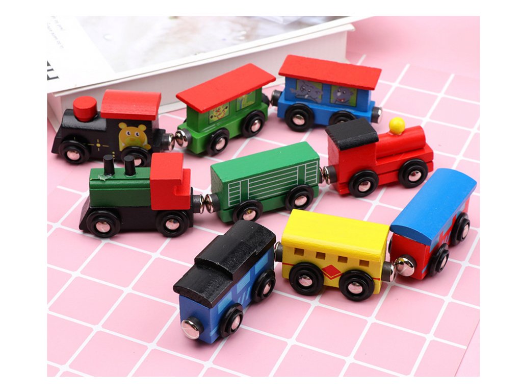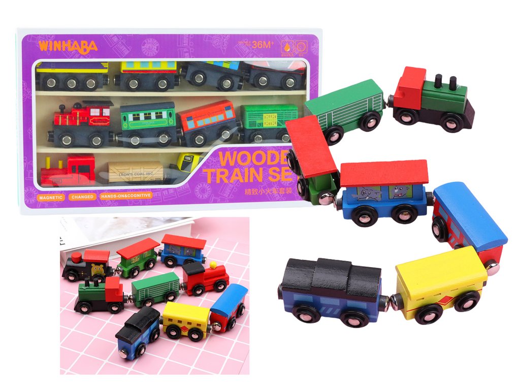 Vonatok és mozdonyok fából készült készlete mágnesen 12 db
