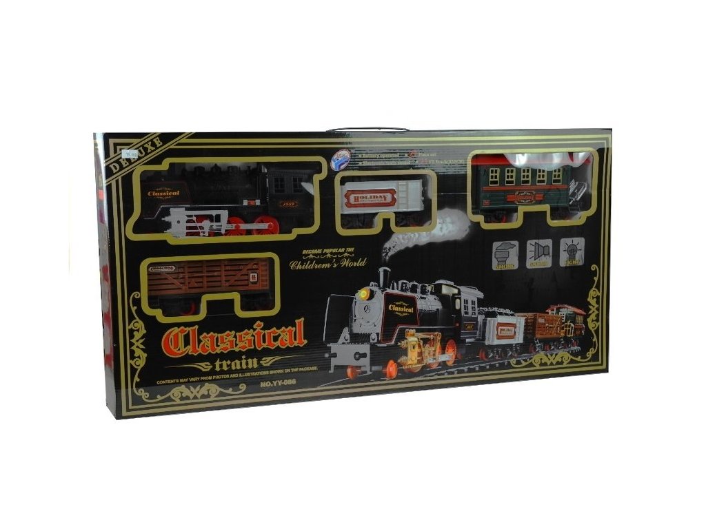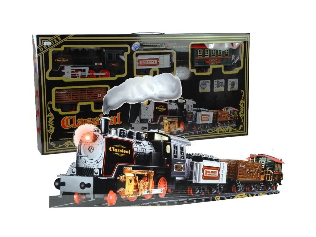 A vonattal ellátott vasúti pálya minden gyermeket boldoggá tesz. A mozdony az egész vonatot meghajtja, hang- és fényhatásokkal rendelkezik. A mozdony gőzt is bocsát ki a kéményből. A készlet egy vasútállomást is tartalmaz.