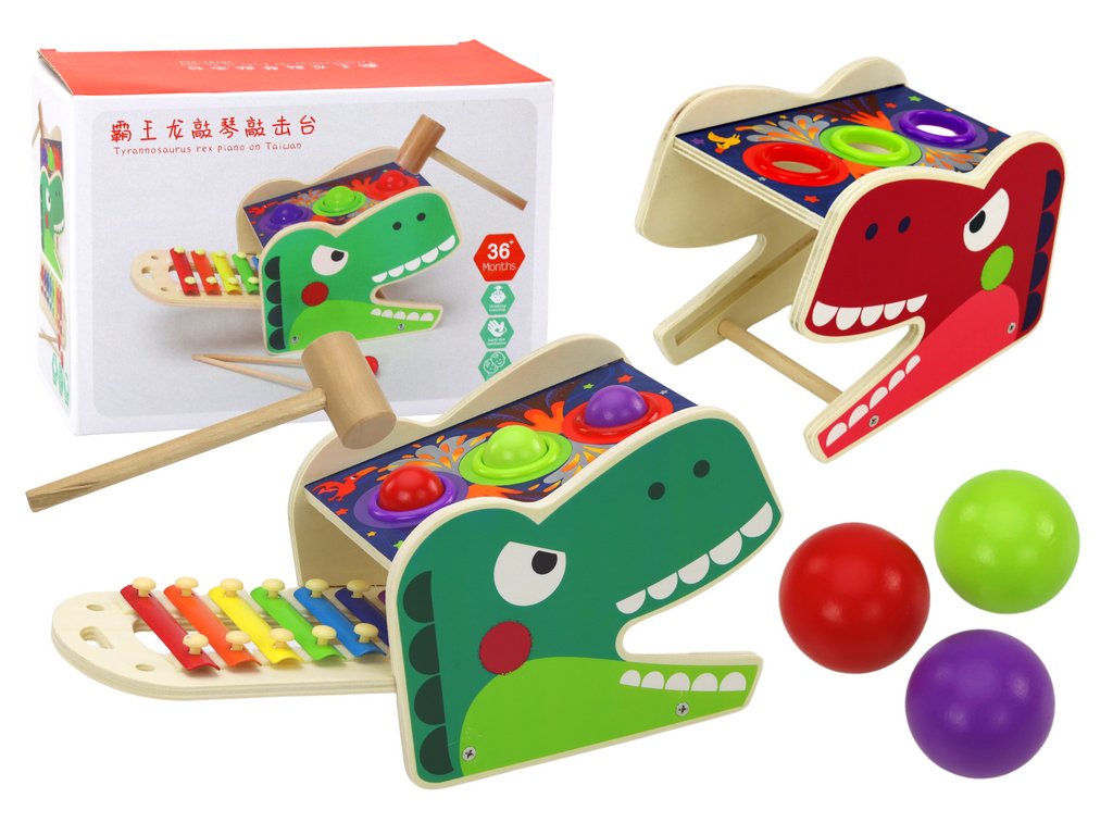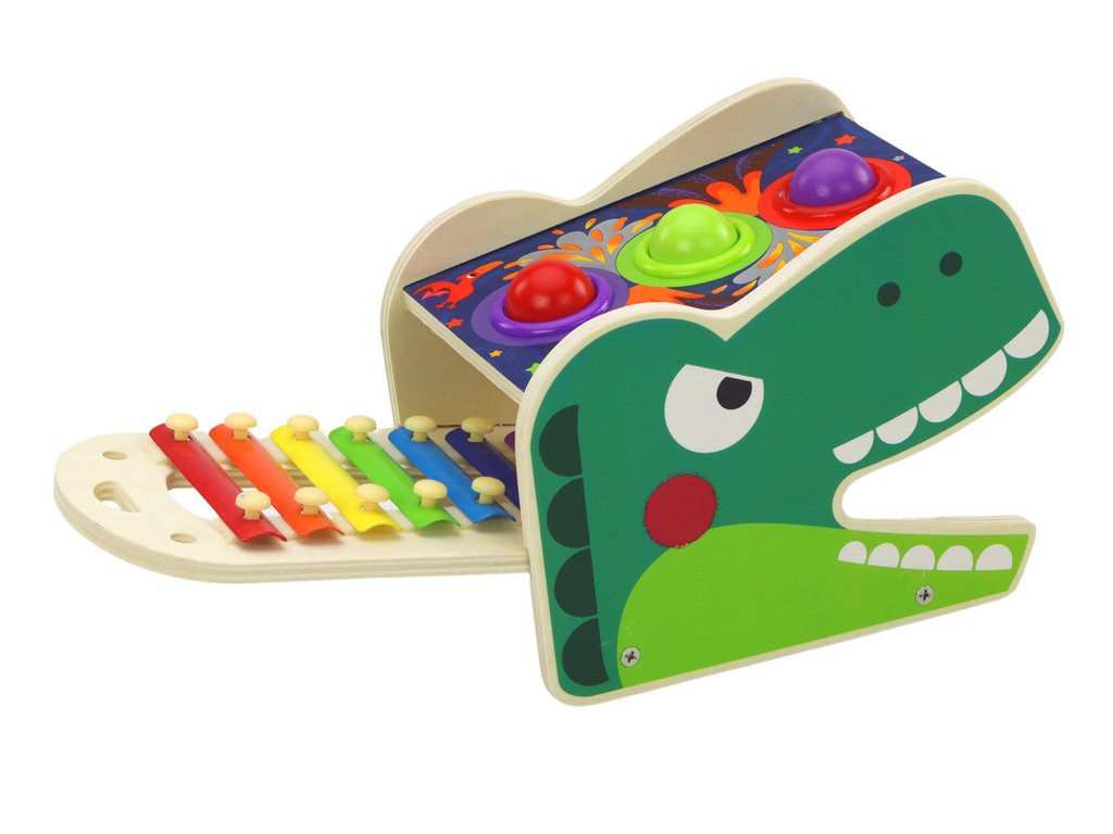 Dinoszaurusz alakú 2 az 1-ben dörömbölő xilofon! Ez a kifinomult játék nemcsak a kis dinoszaurusz-rajongókat fogja rabul ejteni, hanem felejthetetlen mozgás- és oktatási pillanatokat is biztosít minden korosztály számára.