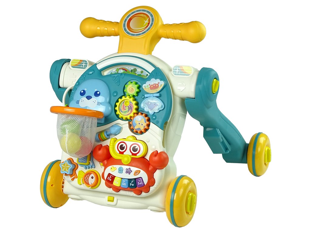 A játék nagy előnye, hogy négyféleképpen használható. A kisgyermek eldöntheti, mit válasszon. Elkezdhet játszani magával a zongorával, használhat tanulóasztalt, biciklizni vagy robogóval is lehet járni, ami támogatja a járástanulást. Biztonságos és csúszásmentes kerekek. Az interaktív hangtáblával ellátott oktatási sétáló nagyon egyszerűen használható.