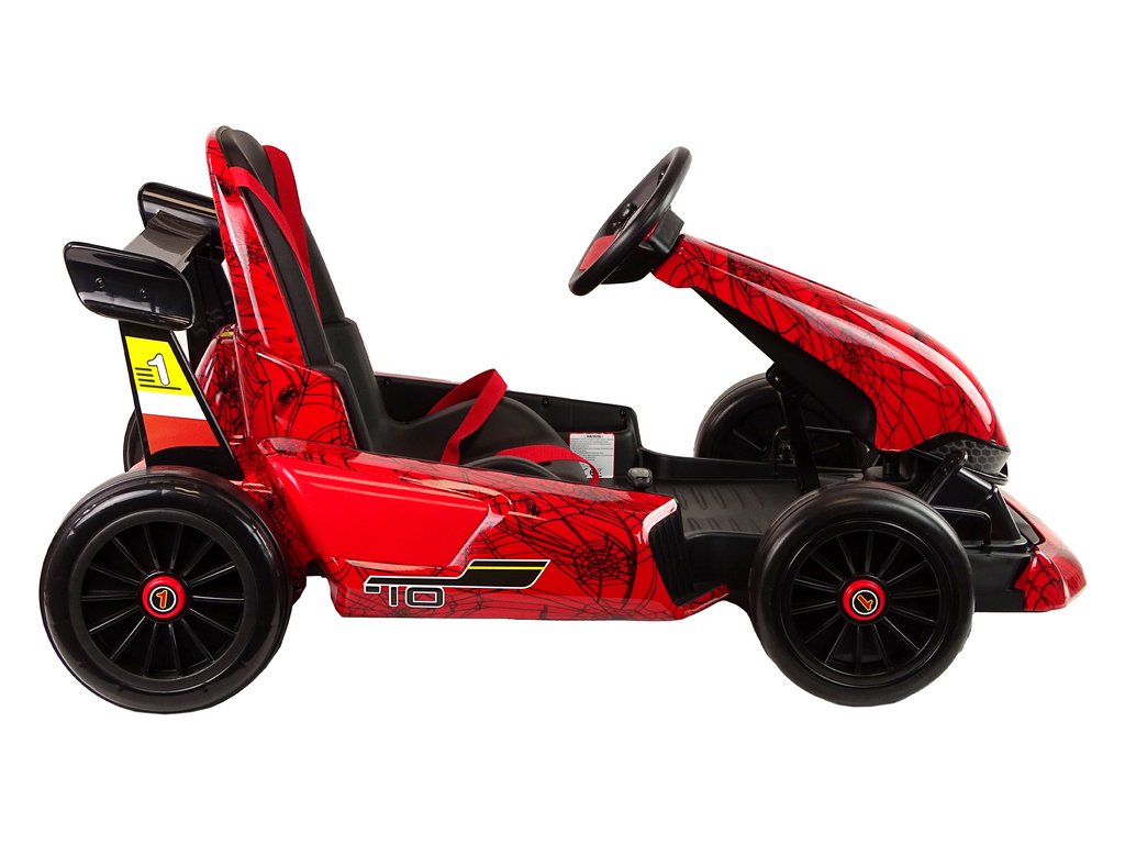 A gyerek elektromos gokart Spider 24V 7Ah akkumulátorral és két 45W-os motorral 65 kg teherbírású. A gokart sportos formájú üléssel van felszerelve, biztonsági övvel. A gokart akár 12,5 km/h sebességet is elér. A gokart felfújható kerekekkel rendelkezik, és 2,4 GHz-es távirányítóval vezérelhető.