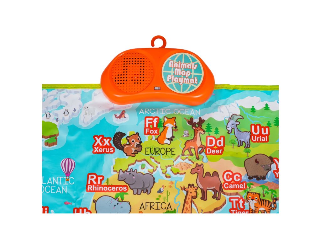 Ez a színes zenélő szőnyeg ideális a 3 évesnél idősebb gyermekek számára, és összeköti a játékos szórakozást a tanulással. A szőnyeg felületén található billentyűknek, állatoknak és betűknek köszönhetően a gyermek akár 26 állatot és az angol ábécé betűit is megismerheti. A megfelelő kép megnyomásakor megszólal az állat neve vagy a betű kiejtése. Ezenkívül a szőnyeg 24 billentyűt kínál saját játékhoz, 10 előre beállított dallamot, valamint 8 hangszer kipróbálásának lehetőségét.