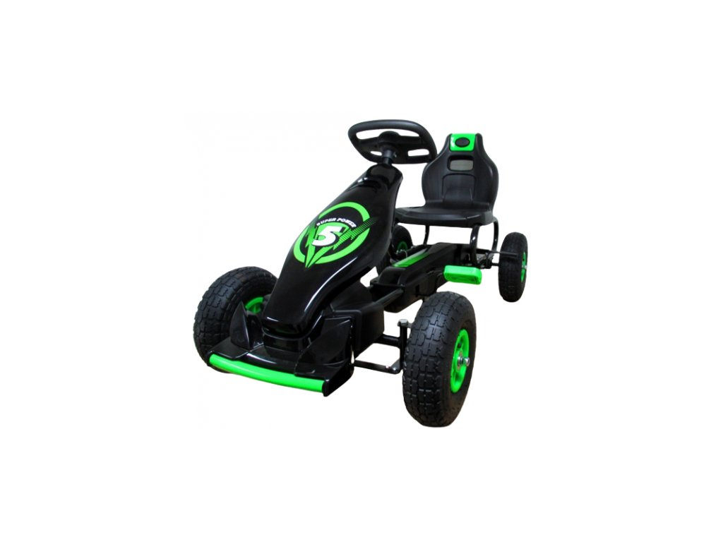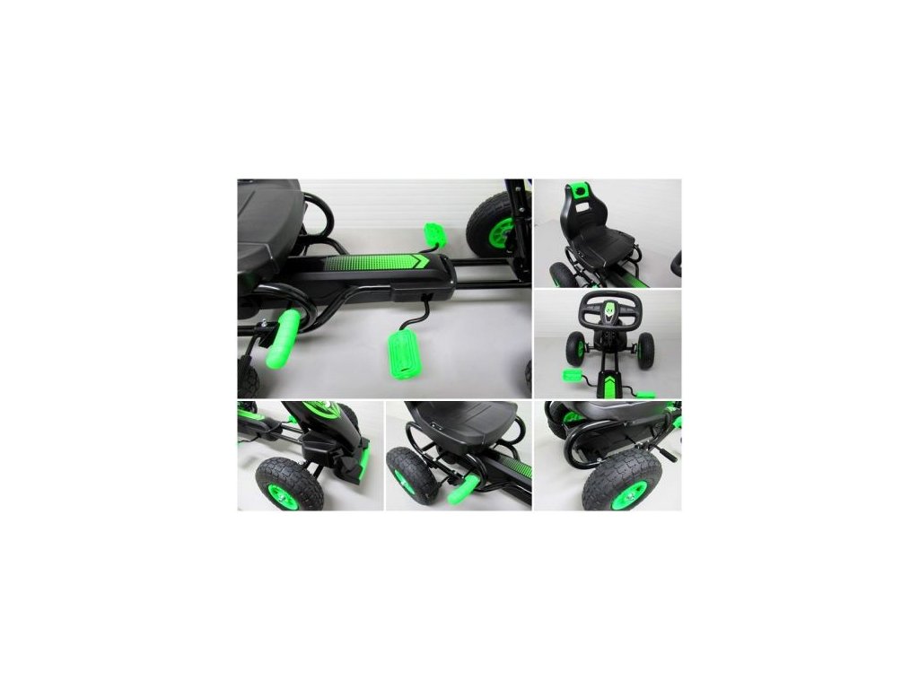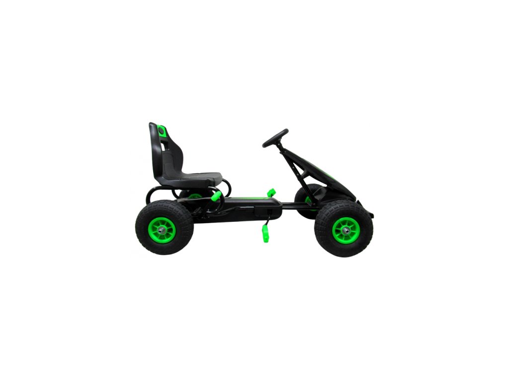 A gyermekpedálos gokart biztonságos és kényelmes. Speciálisan kialakított kerettel és egyedi kialakítással rendelkezik. Mindenekelőtt felfújható kerekekkel rendelkezik, amelyeknek köszönhetően kényelmesebbé válik az utazás. A gokart kézifékkel és 2 fokozatban állítható üléssel rendelkezik.