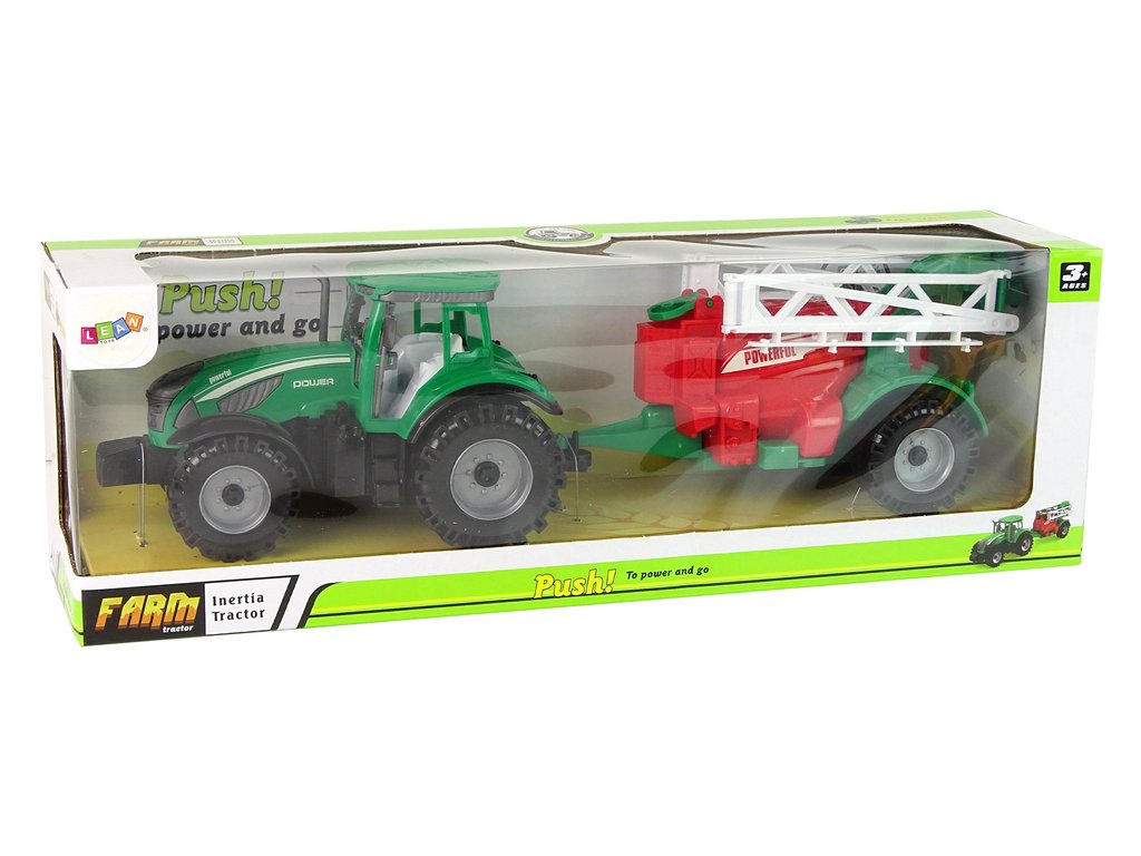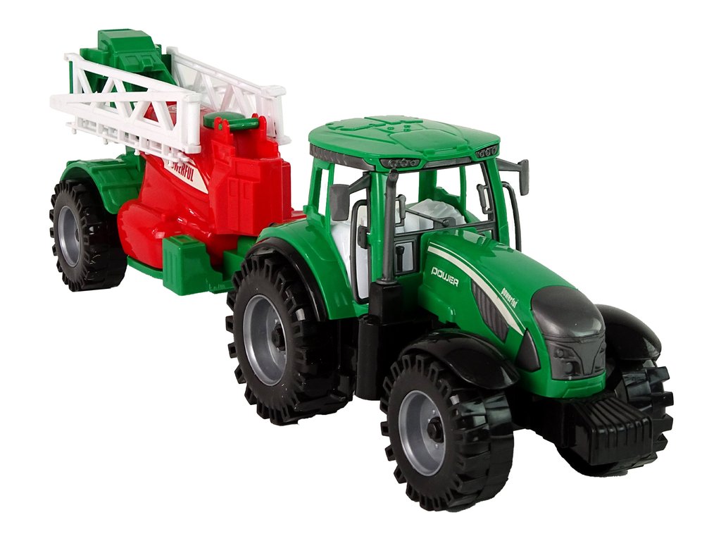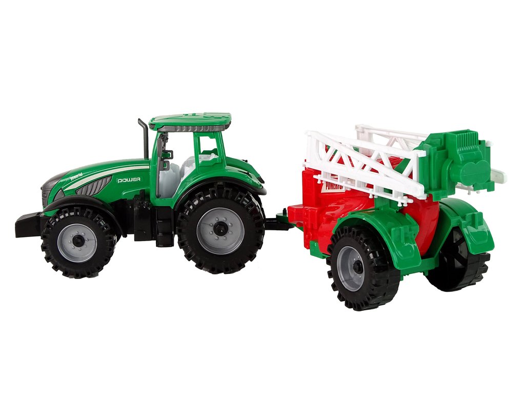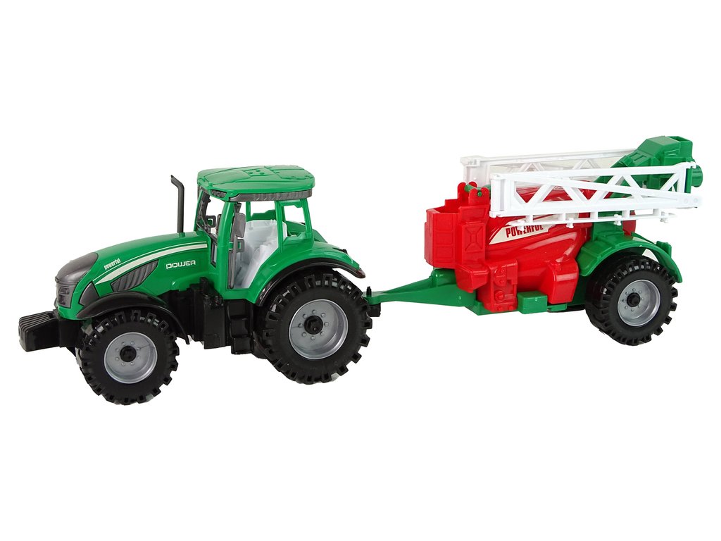 Ez a traktor minden játékot felpezsdít, és lehetővé teszi a gyermekek számára, hogy felfedezzék a gazdálkodás lenyűgöző világát. A csomagban egy zöld traktort találsz piros-zöld permetezővel, amit az autó hátuljára rögzíthetsz. A traktor súrlódó meghajtással rendelkezik, amely biztosítja az előre és hátra mozgást. A sprinklernek hosszú, fehér karjai vannak, amelyek mozgathatók, így a játék még szórakoztatóbbá válik a gyermek számára.