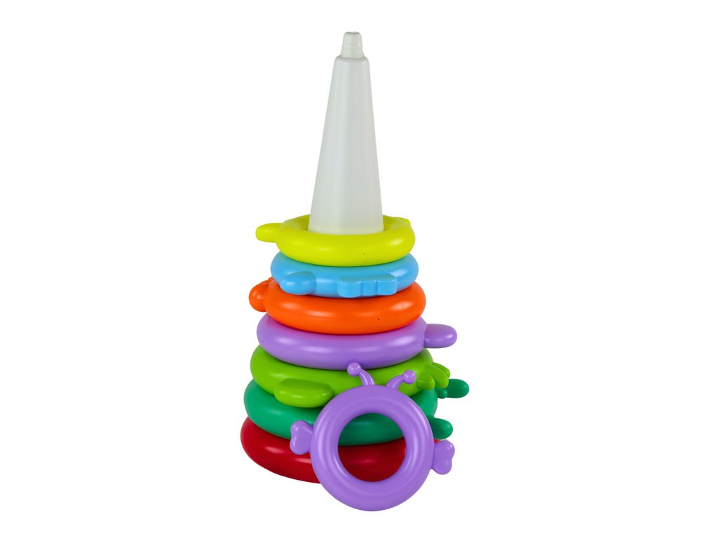 Zsiráf puzzle piramis 13 színes kerék 43cm x 18cm x 18cm